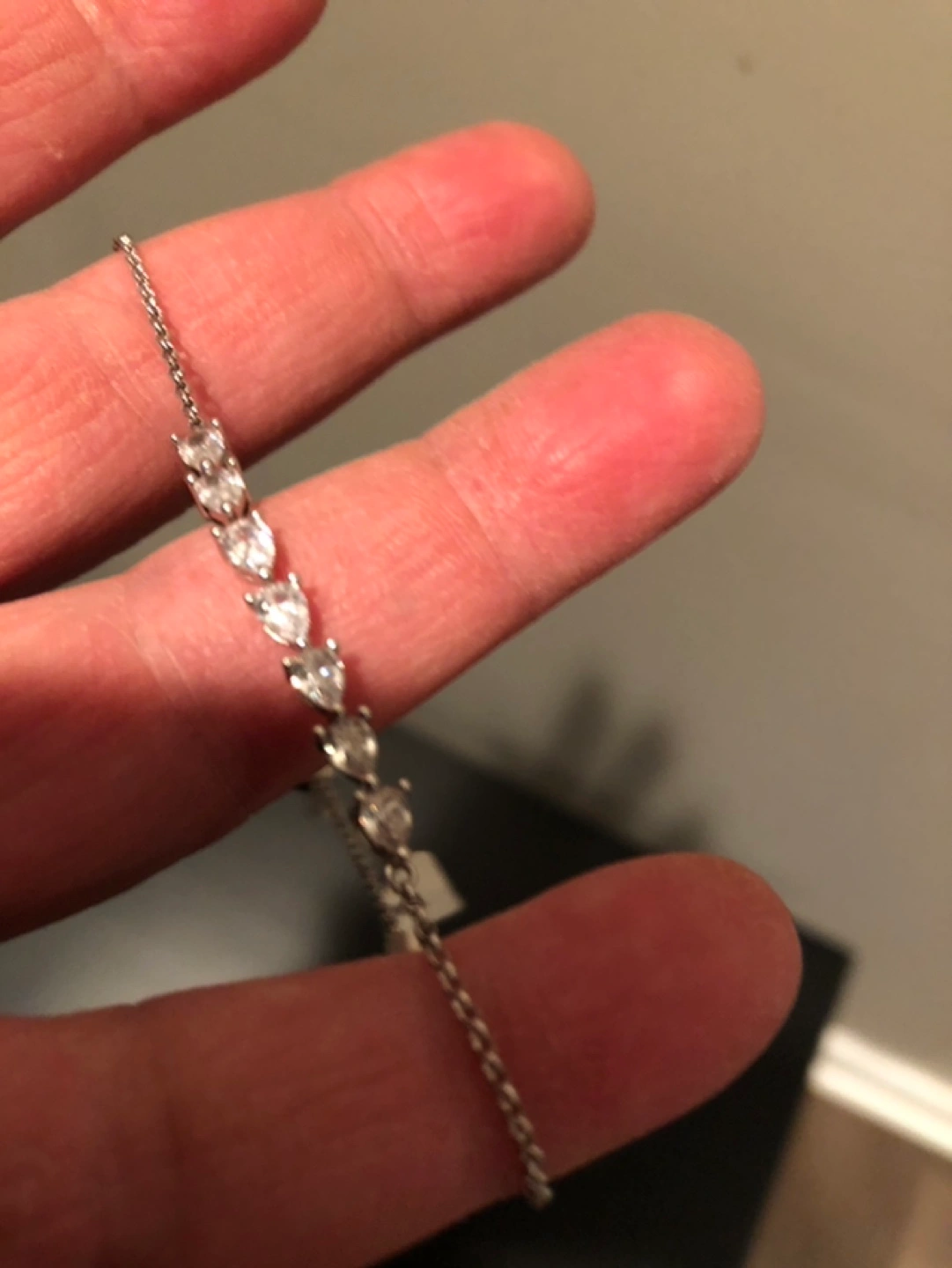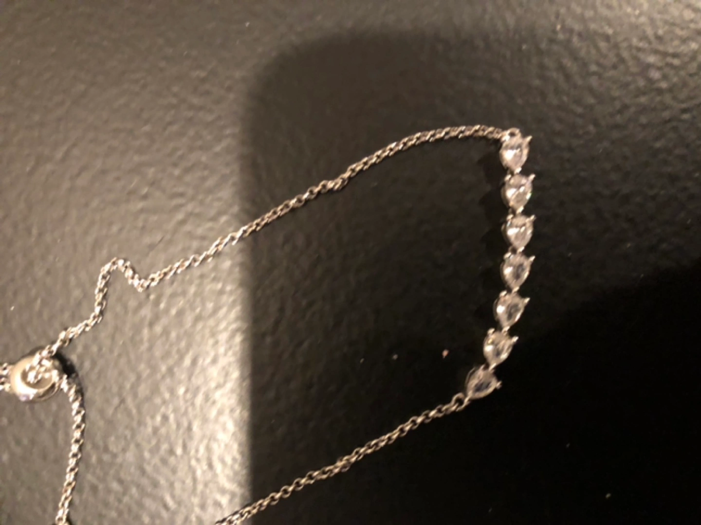 Silver chain bracelet with teardrop crystals. Adjustable length.