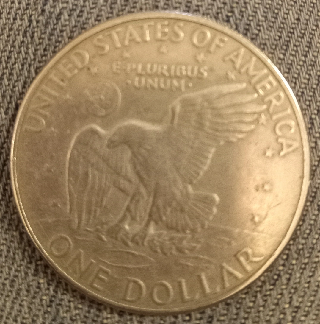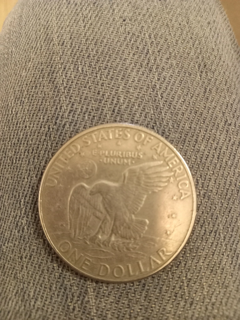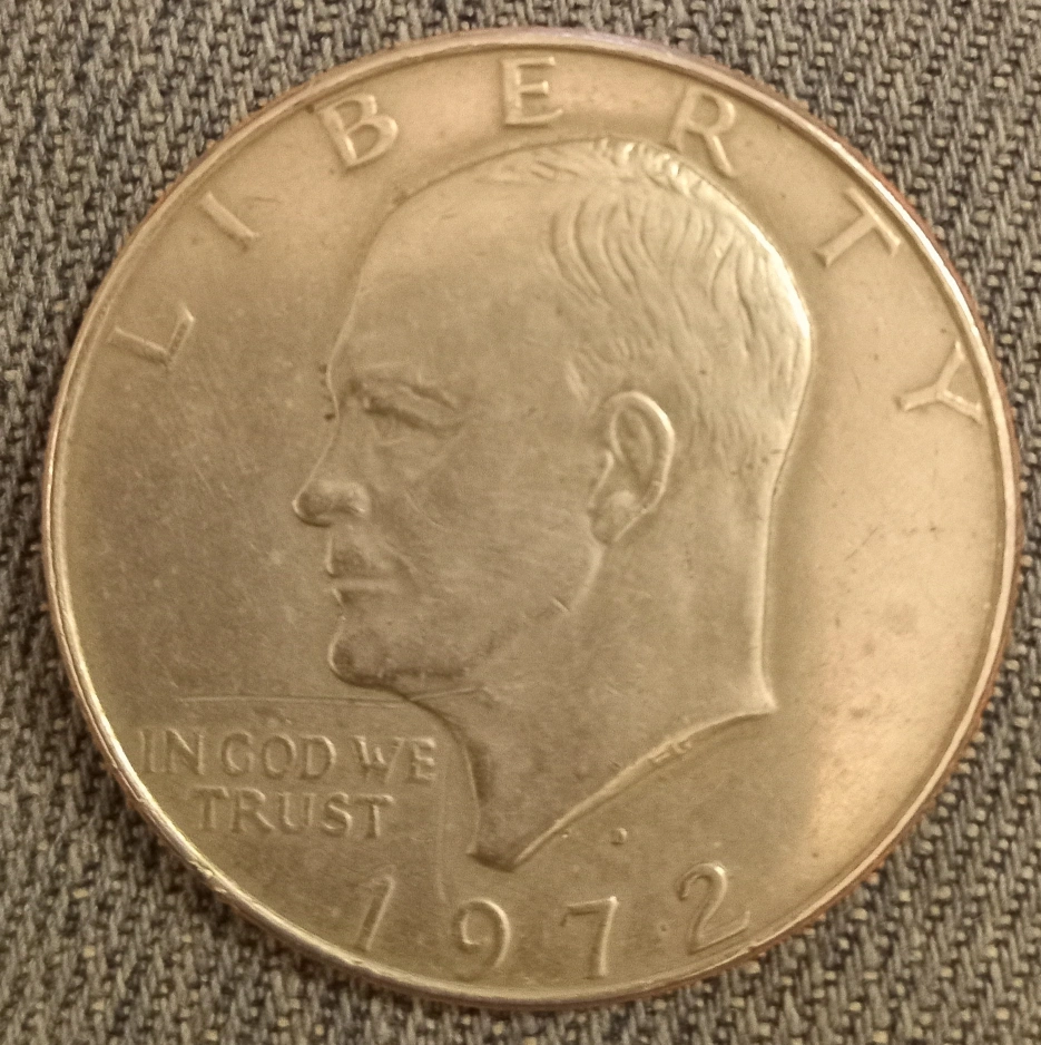 An American silver dollar D coin (1972).