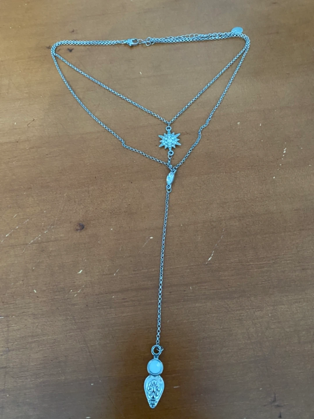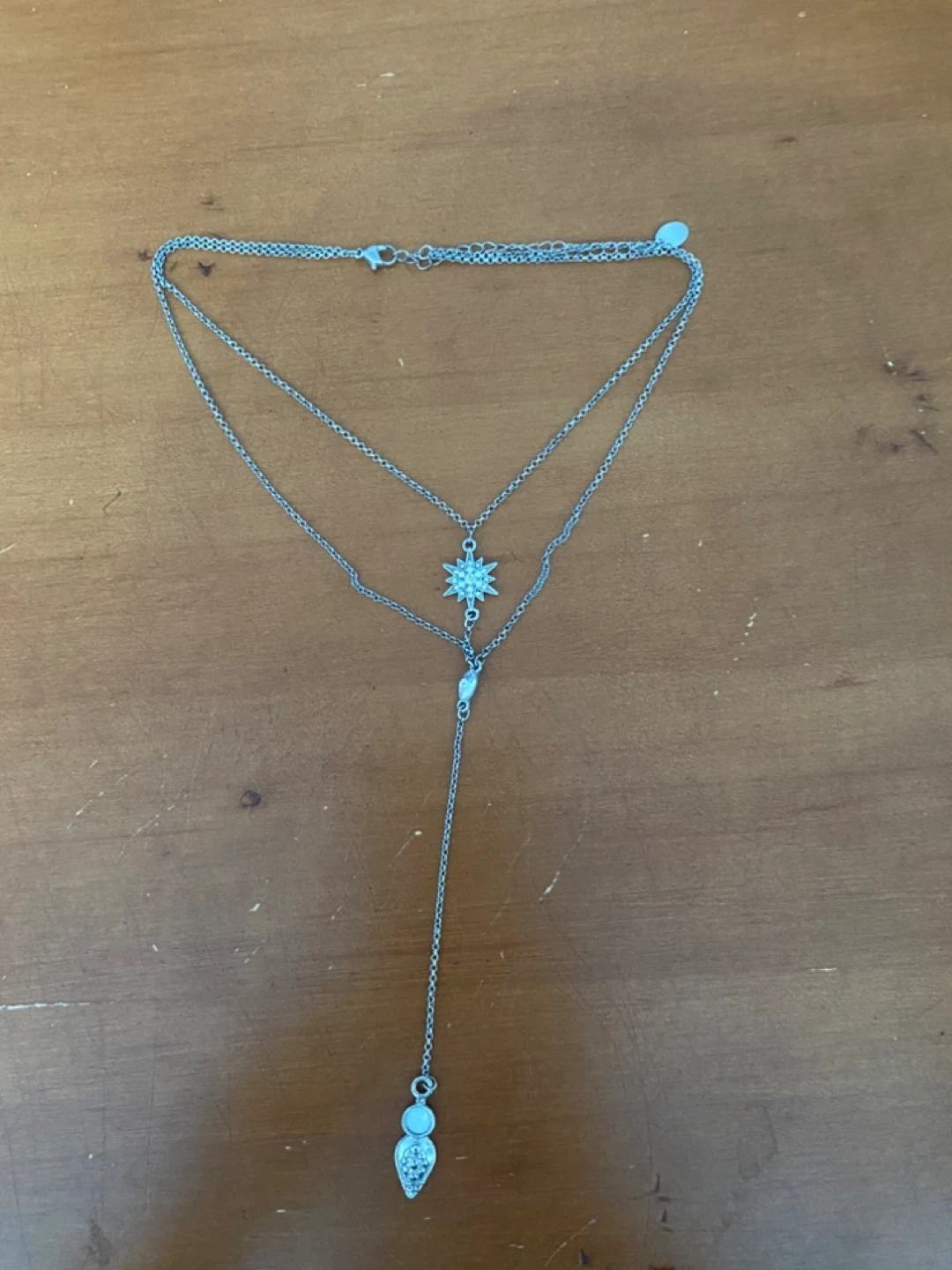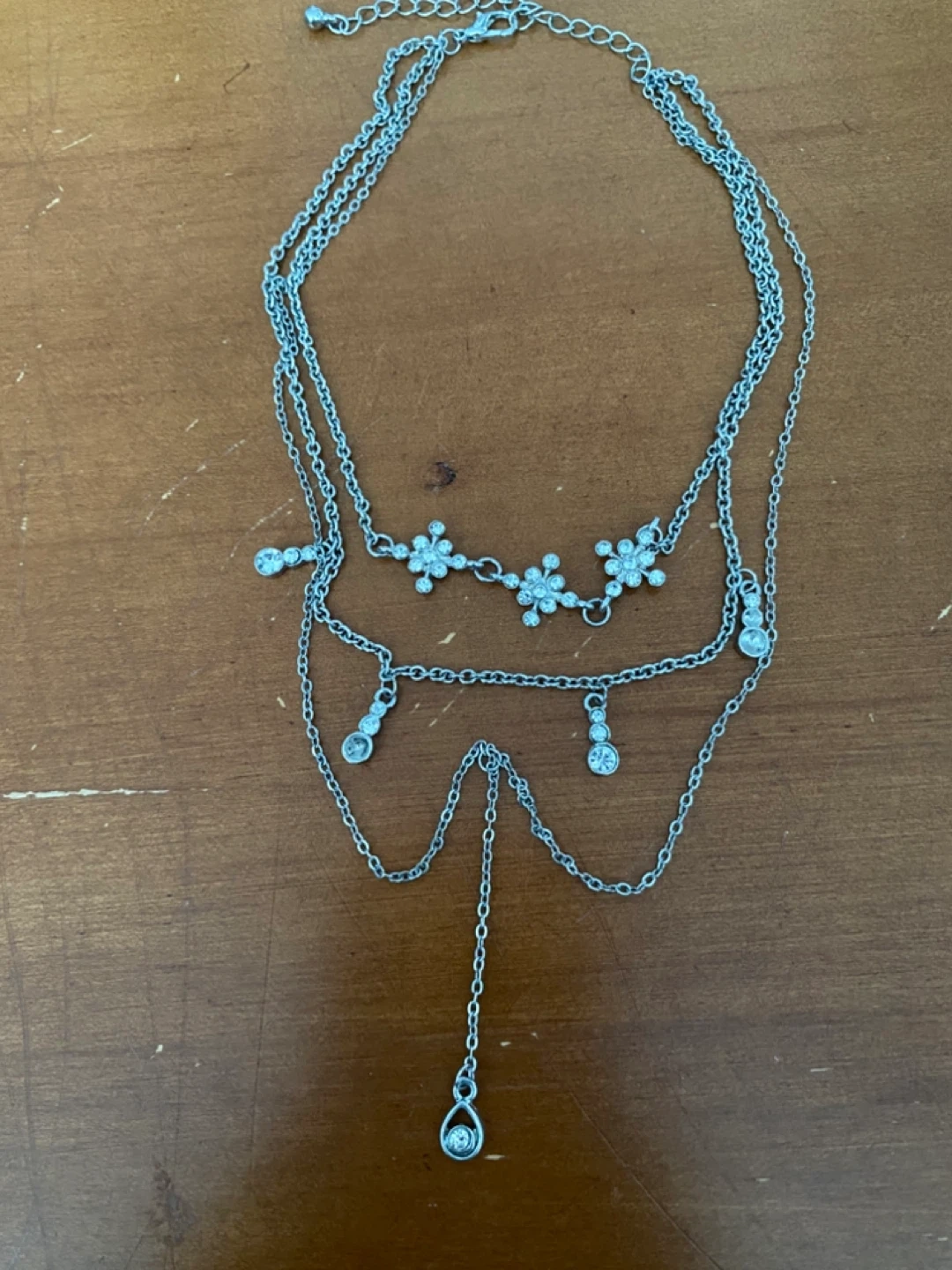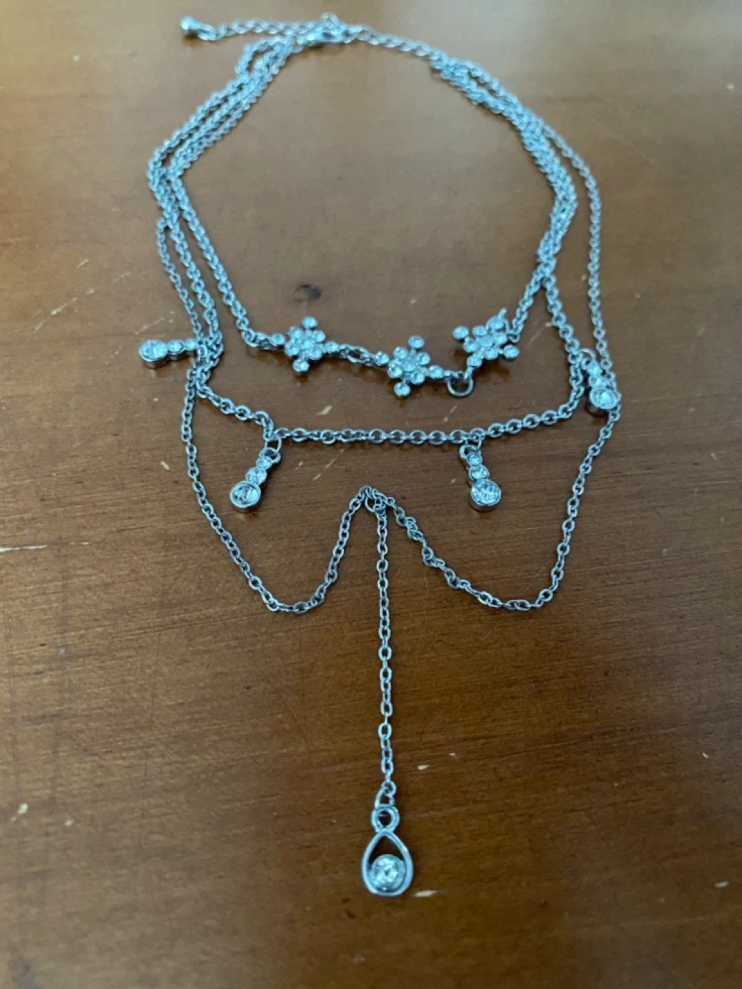 Selling silver layered necklaces with different layers and sparkly details. Perfect for adding a little something extra to any outfit! Smoke free and pet friendly environment. Porch pick up and public meet up available. Downtown Burlington near New Street and Martha St