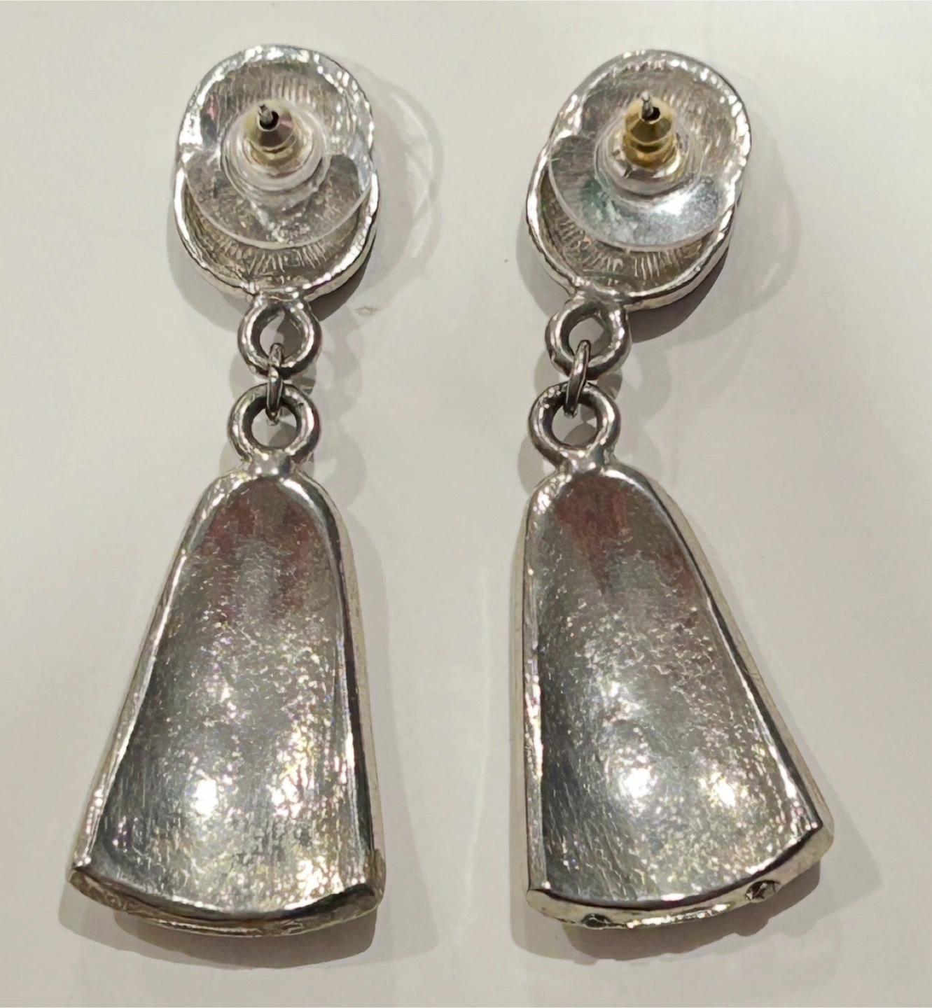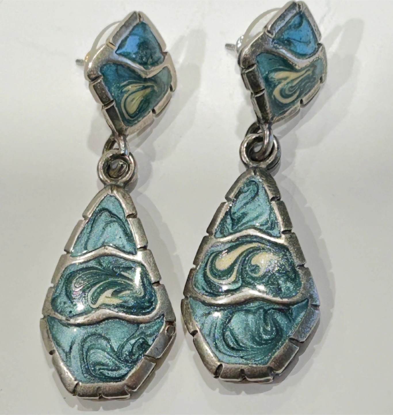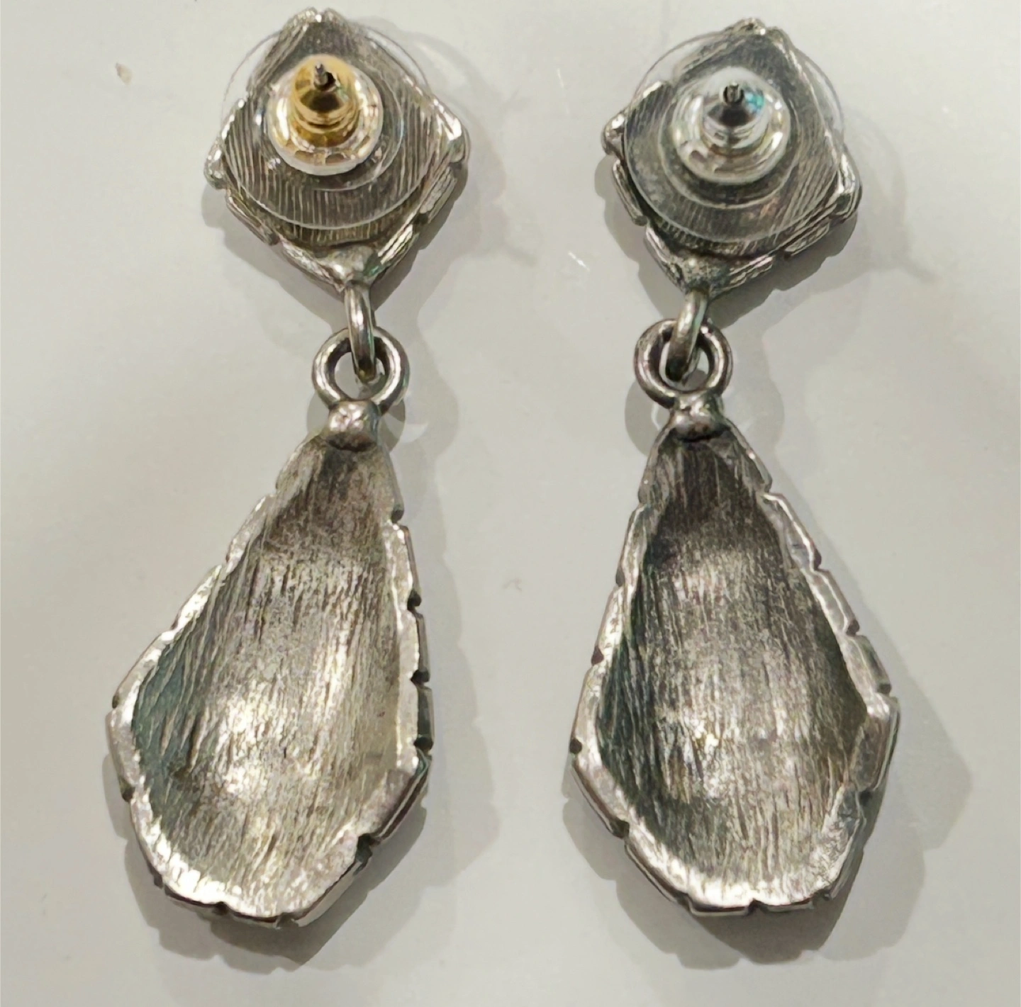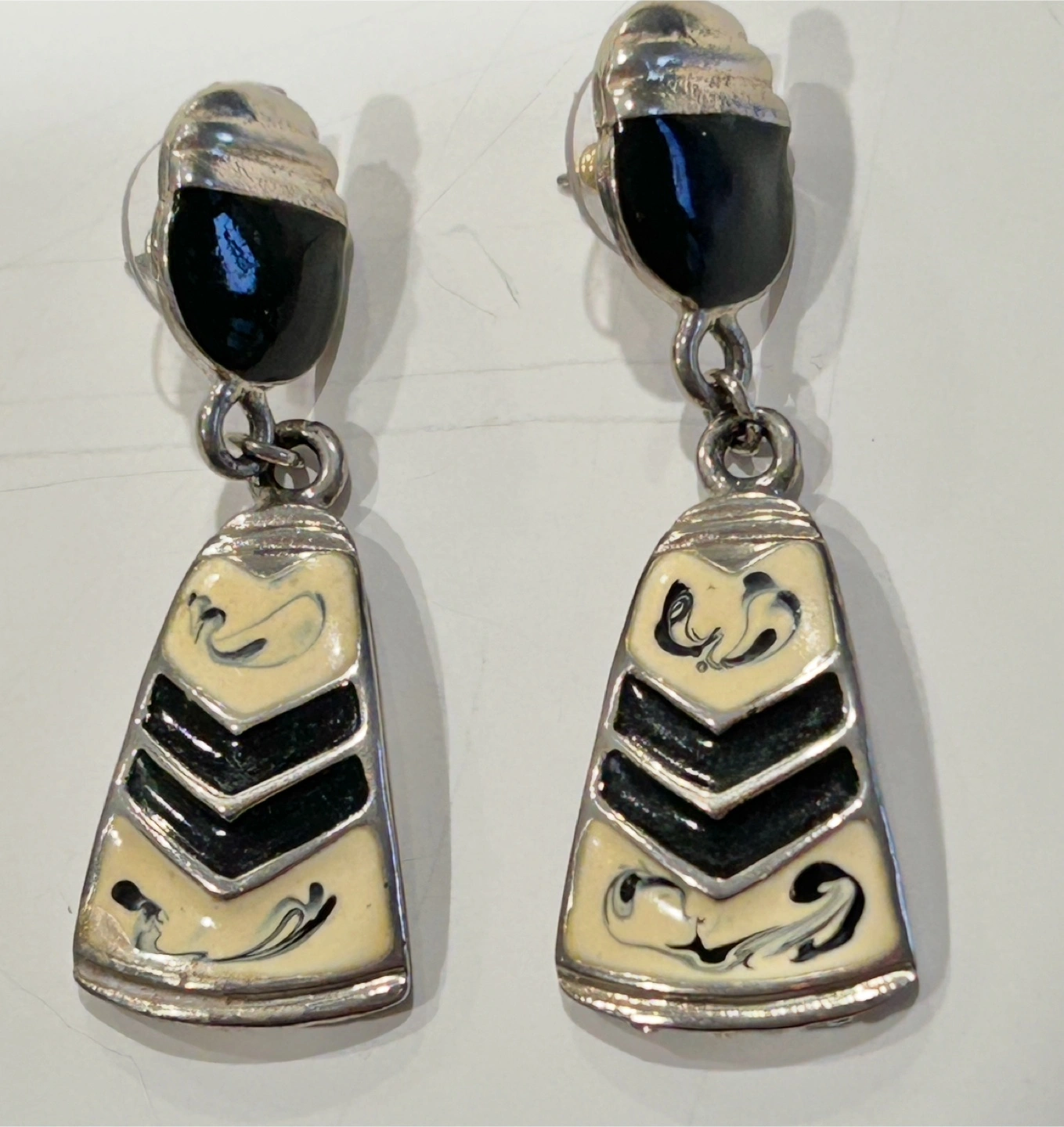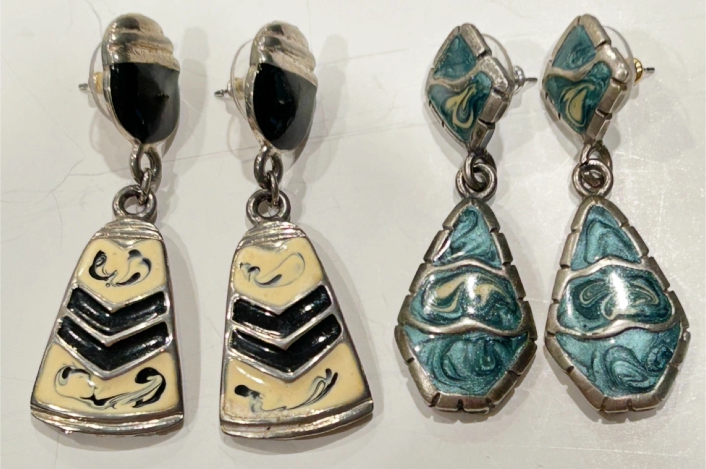 Pair of Silver Tone Drop Earrings Black and cream/beige Blue/teal and cream Excellent condition $7 each or take both for $10 See other listings for more earrings and jewelry
