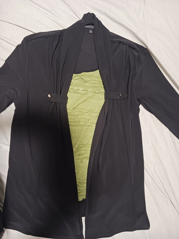 Selling a Simplitic black cardigan in size L. It's in great condition and ready for a new home!