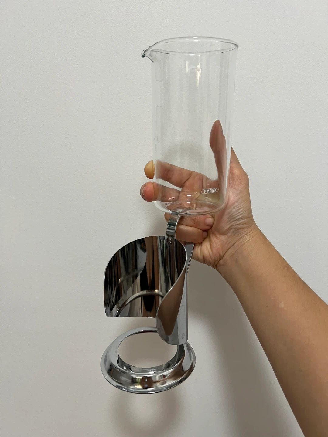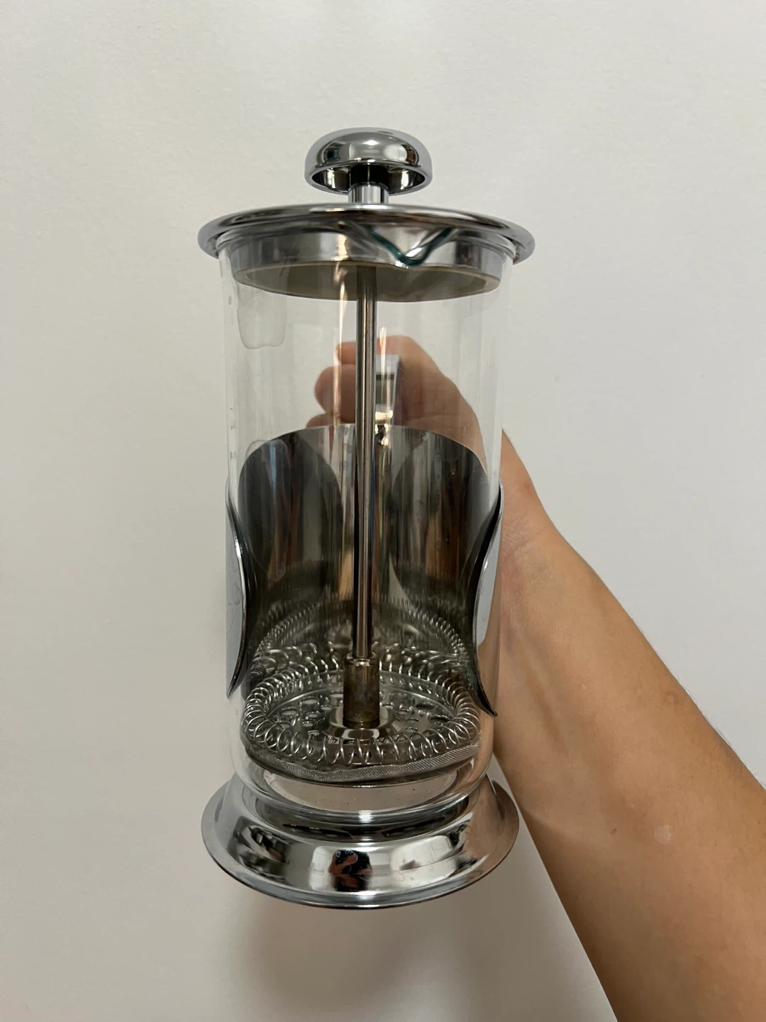 Single serve Pyrex glass french press. Clean and well maintained, though you might want to change the mesh filter as it’s starting to warp a bit. Has not been used in quite a while!