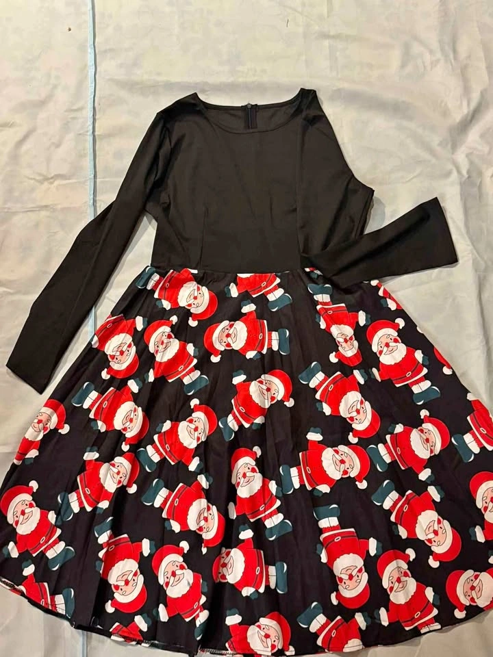 Celebrate the season in style with this adorable Santa-themed holiday dress! Features a fitted black top with long sleeves and a flared skirt covered in cheerful Santa Claus prints. Perfect for Christmas parties, holiday photos, or cozy festive vibes all season long! โค๏ธ Size: XL (Extra Large) ๐ Brand new โ never worn ๐ฐ Retail over $40, asking only $20 ๐Pick-up in Mission โ near Centennial Park โฐ Appointments available daily 9amโ9pm ๐ฉ Message to reserve or try on!