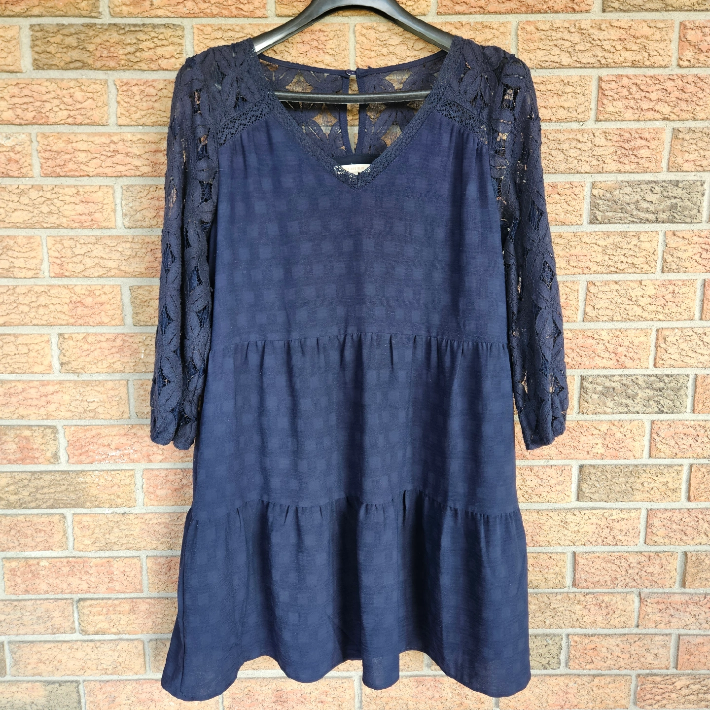 Show allSkies Are Blue V-Neck Lacey Shift Dress Navy Blue Size M