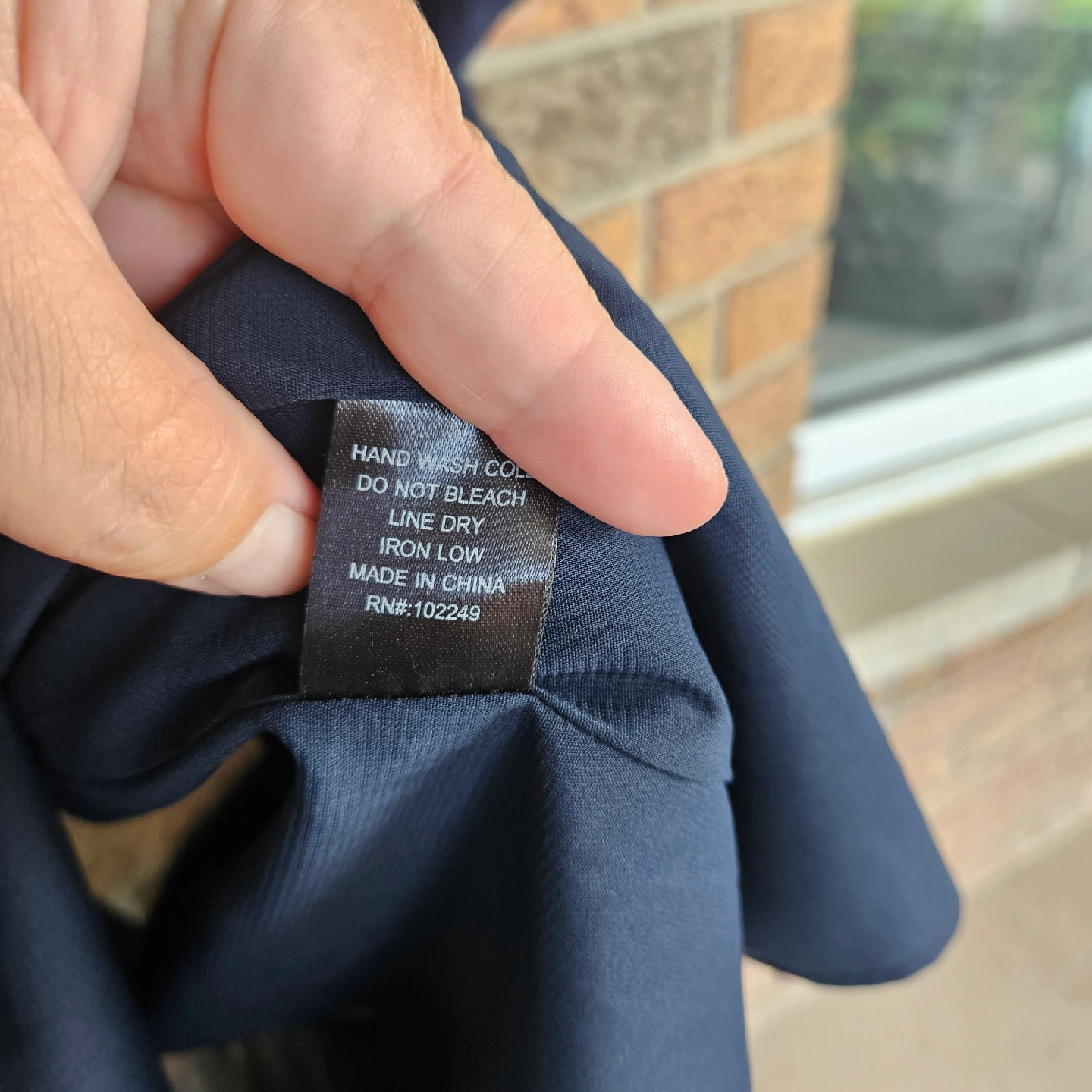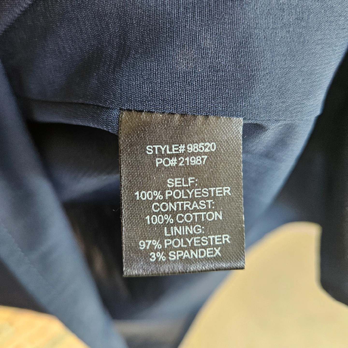 Skies are Blue Woman's Dress Blue Size M Length 34" Chest 20" Waist 21" Hips 26" Sleeve 18" Attached slip lining Lace shoulders and sleeves 100% polyester Lining slip: 97% polyester, 3% spandex Made in China