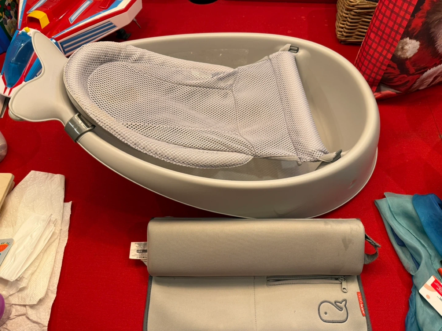Selling a Skip Hop Moby baby bathtub with a sling! This tub is designed to grow with your baby, from newborn to infant. The protector will be included - it’s to protect your elbows on the big tubes