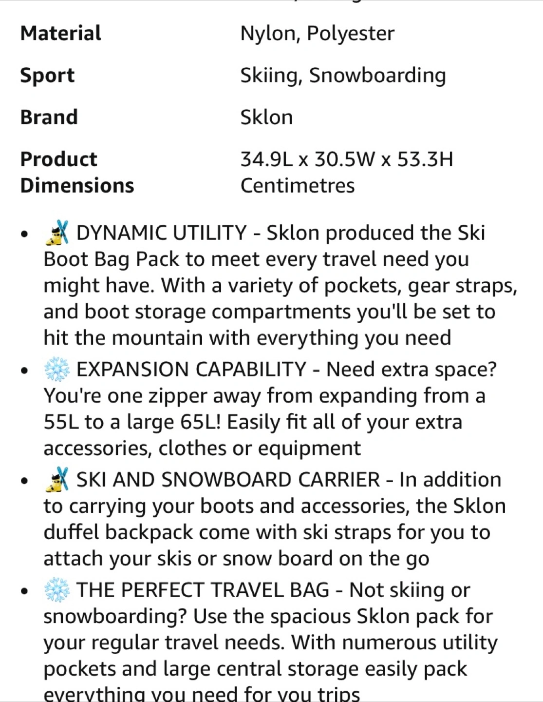 Selling a Sklon ski boot backpack. It's black and can expand from 55L to 65L, giving you plenty of space for all your essential gear. When you need extra capacity, just unzip for a full 65 liters of space! brand new unused condition porch pick up in bothwell drive in sherwood park cash preferred
