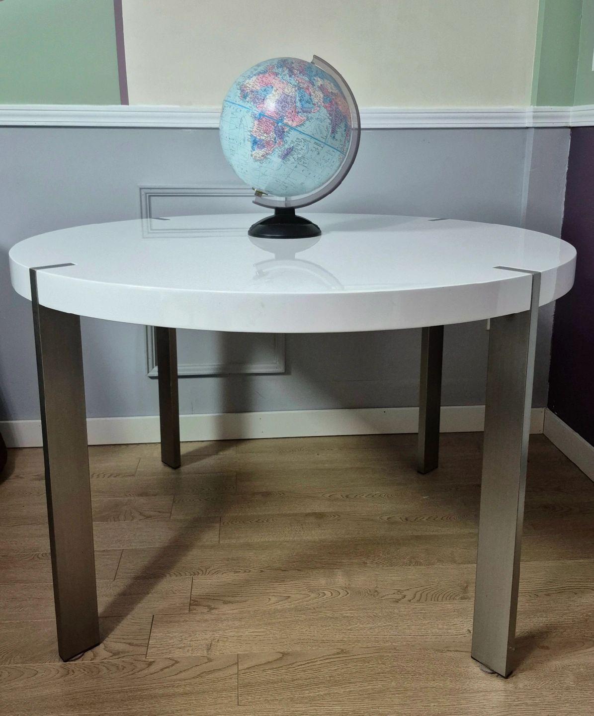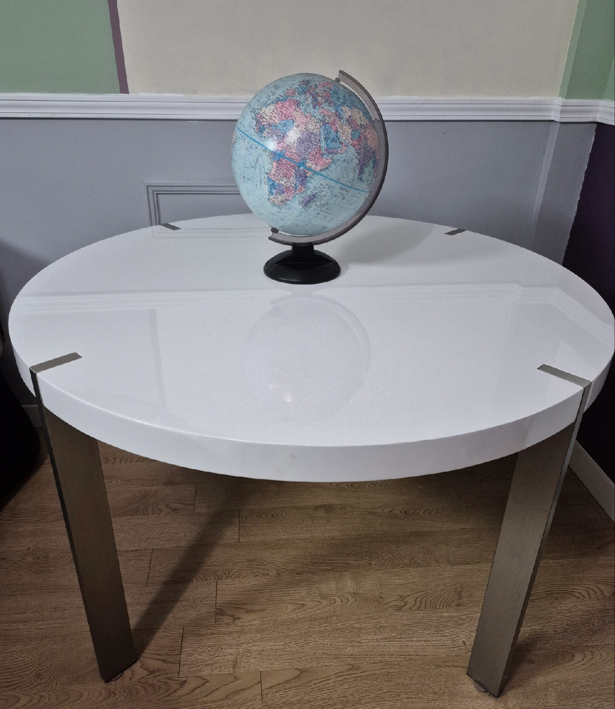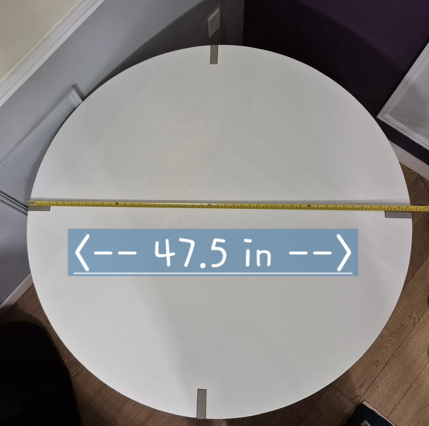 Tired of balancing your dinner plates on your knees? Time to upgrade your dining game. Meet this large white table—maybe a dining table, maybe your new work-from-home command center. Either way, it’s ready for action. ✨ Condition: Very Good. Clean, sturdy, and waiting for your next meal or project. ✨ Specs: 47.5in x 30in — plenty of room for food, laptops, or board games. ✨ Style: Classic white = matches everything, refuses to judge your tablecloth choices. Perfect for: Meals that aren’t on the couch. Crafting, puzzles, or playing board games like a pro. Hosting guests… or practicing solo table etiquette. Ready for pick-up—hurry, it’s got places to be!