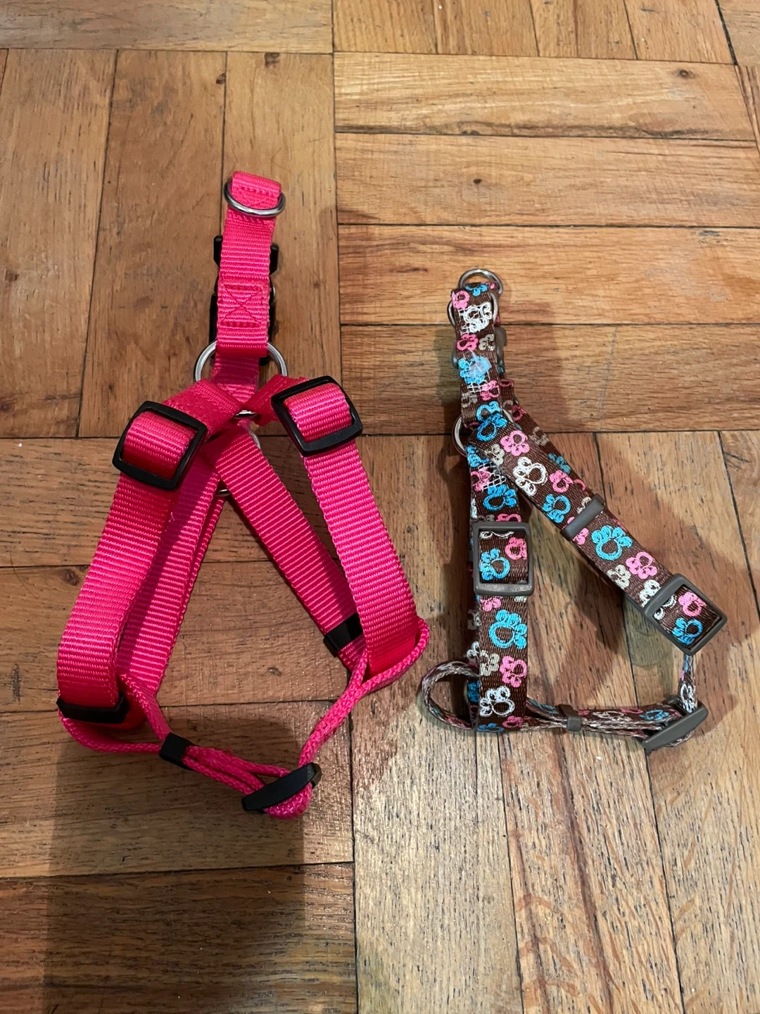 Pick Up Only Close Too 1890 Jane Street (I DO NOT MEET THERE) Exact Address Is ONLY Given When Person Is On There Way! Lobby Pick Up Only! See My Other Listings For More Amazing Furbaby Items Serious People Only! Cash Or Etransfer Payment Only **FIRST COME FIRST SERVE BASIS** $15 FIRM BOTH Must Take Both I do not know measurements Size Small Both Step In Harnesses Brown Paw Print used once, pink jump never used Amazing Condition