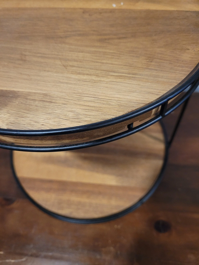 Acacia Wood 2 Tier Serve Tray Is Perfect For Everyday Use Or Entertaining. Simple Design And Shape Effortlessly Elevates Your Table. Acacia Wood, Iron In Matte Black Color. 31.3X30.5X47Cm (12.32X12.01X18.5 Inch)