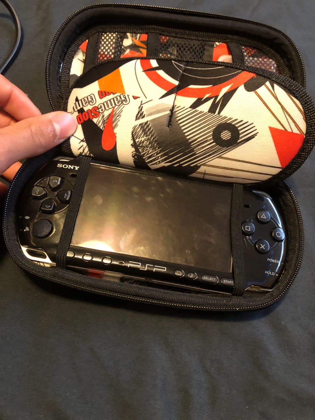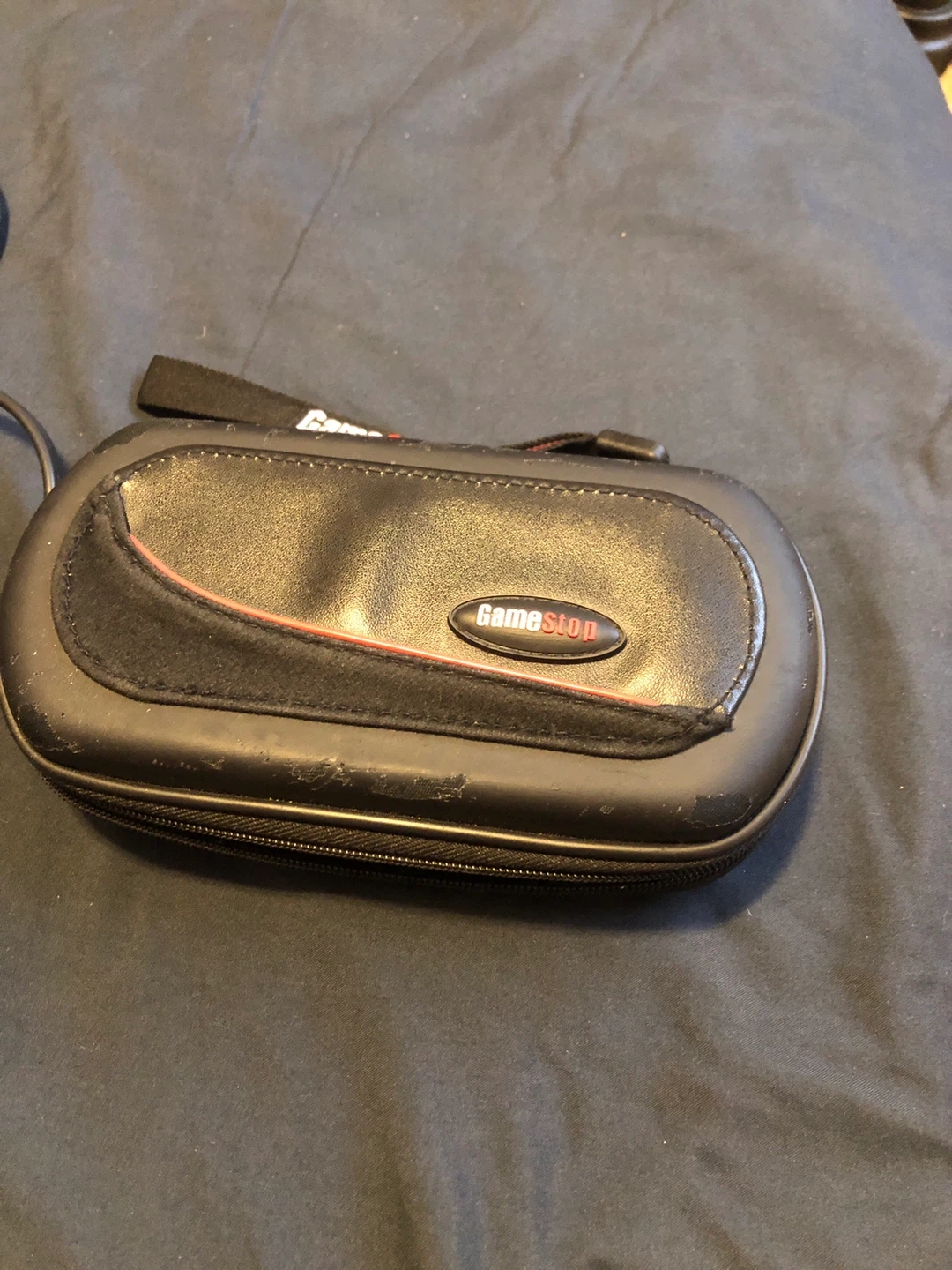 Selling a used Sony PSP 1001 system. It comes with a black carrying case and a charger. The case has a GameStop logo on it. The PSP is in good working condition and ready for some gaming!