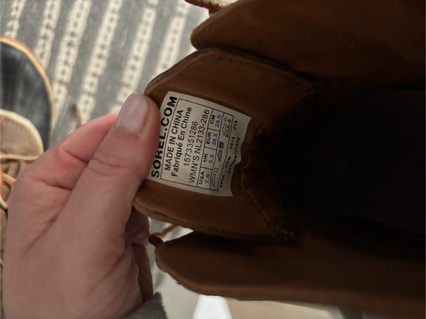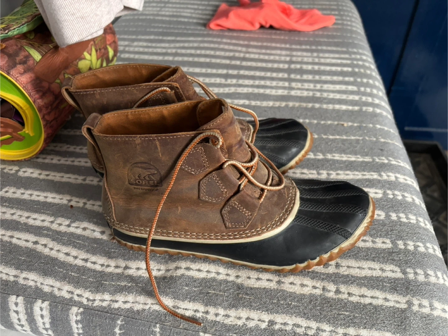 Selling a pair of Sorel ankle boots in a women's size 7.5. They're a stylish brown colour and in good condition. Perfect for everyday wear!