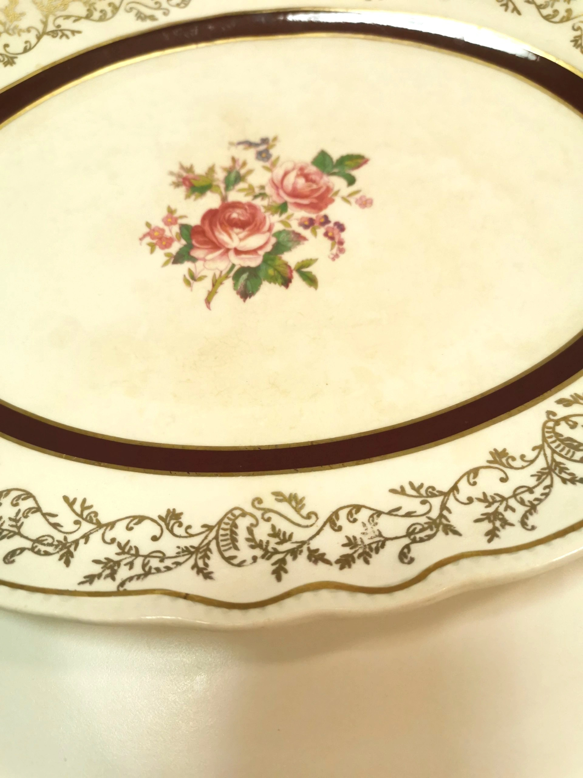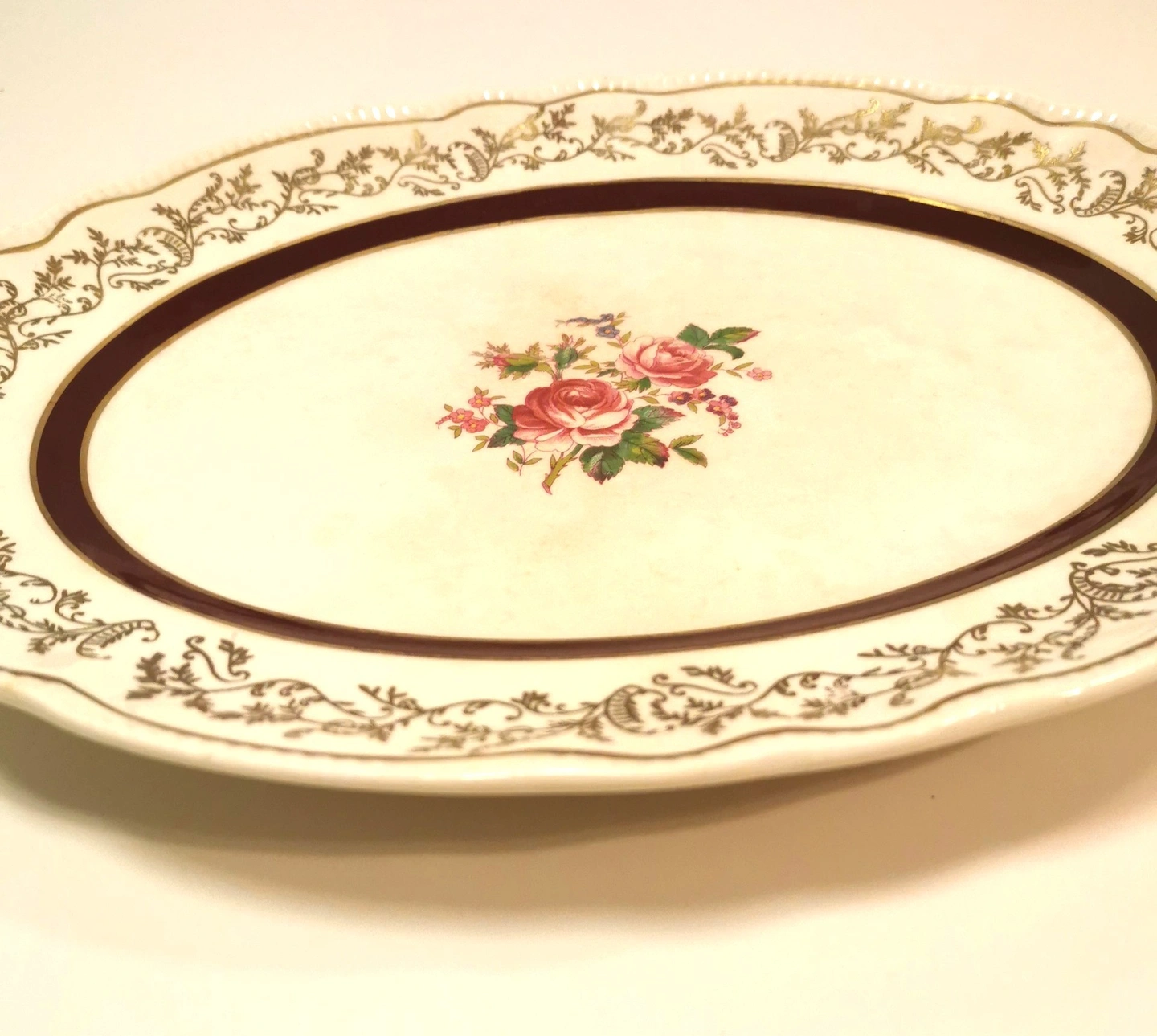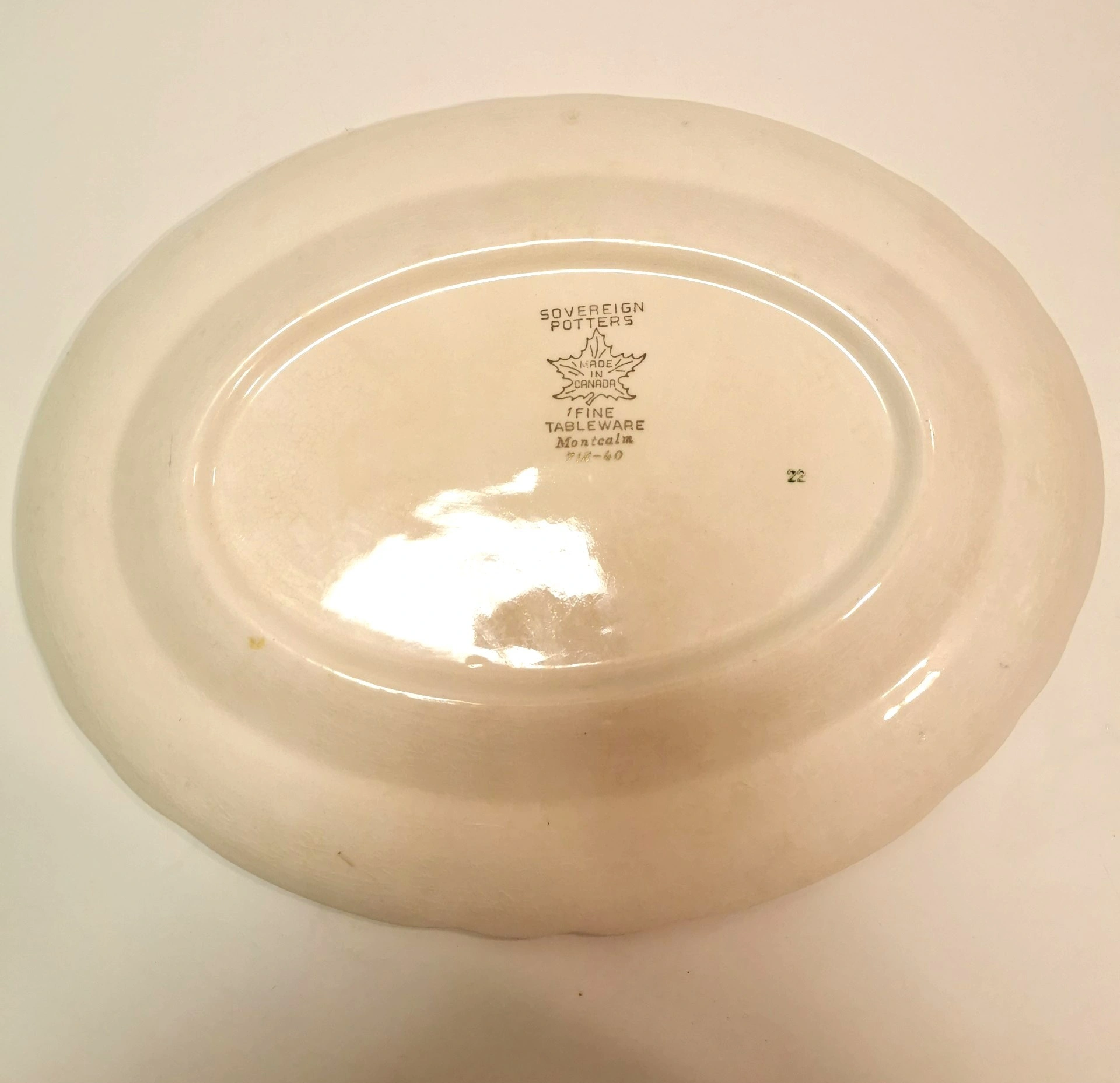 Crafted by the renowned Sovereign Potters, this Montcalm serving platter is a true testament to Canadian craftsmanship. Its elegant oval shape is perfectly complemented by a vibrant multicolor palette, making it a standout piece for any table setting. Whether you're hosting a dinner party or enjoying a family meal, this platter is sure to impress. Proudly manufactured in Canada, the quality of this piece is evident in every detail. It's part of a collection that's cherished for its artistry and durability. Whether you're looking to add to your own pottery repertoire or searching for a special gift, this Sovereign Potters serving platter is a exquisite choice that will be treasured for years to come. Good vintage condition light wear item from the 1950s please reference photos as they are part of the description. Dimensions- Length 12.5 inches, Width 9.75 inches, Height 1.5 inches