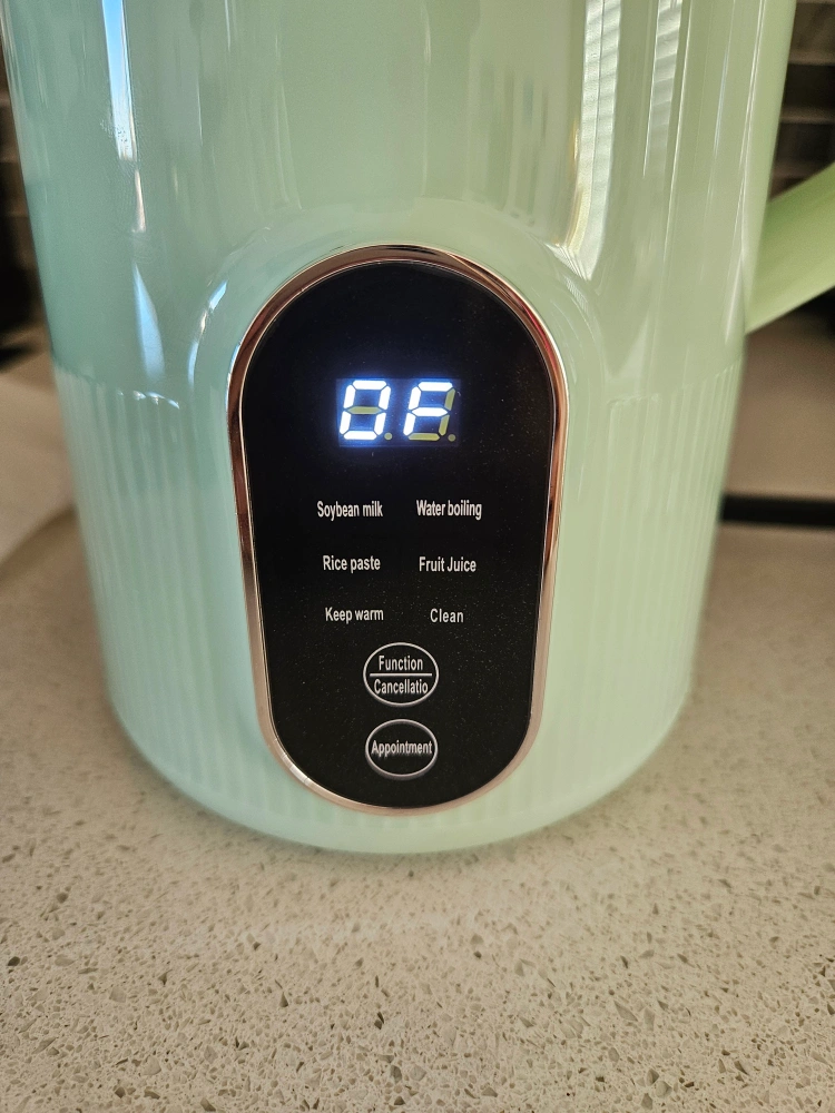 Selling a soy milk maker in a light green colour! It's in great condition and ready to help you make delicious soy milk, rice paste, or fruit juice at home. It also has a warm setting and a cleaning function for easy maintenance