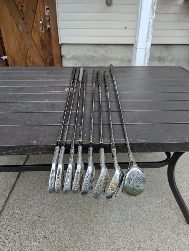 Selling a set of Spalding Pro Model Custom golf clubs. Includes irons 3 through 9, as well as a custom 4 wood. Great for anyone looking to get into golf or upgrade their current set