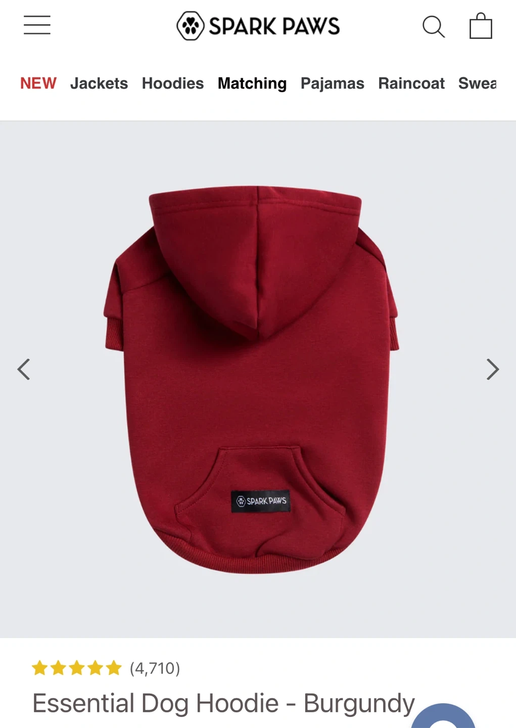 Selling a new Spark Paws Essential Dog Hoodie in burgundy, size 3XL! It's a super cute and cozy hoodie for your furry friend. Check out the size guide in the pictures to make sure it's the right fit for your pup. Originally $42 online. Never worn outside, only tried on. Too big for my friends’ 40 lb frenchie. 📍Pick up near Davisville and Mt. Pleasant Rd. Cash strongly preferred, thanks!😊