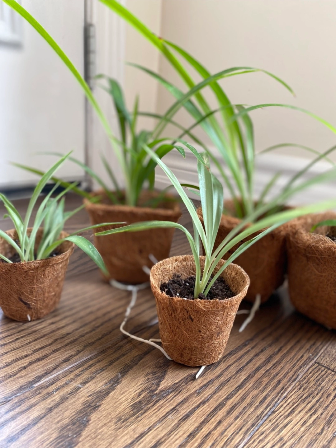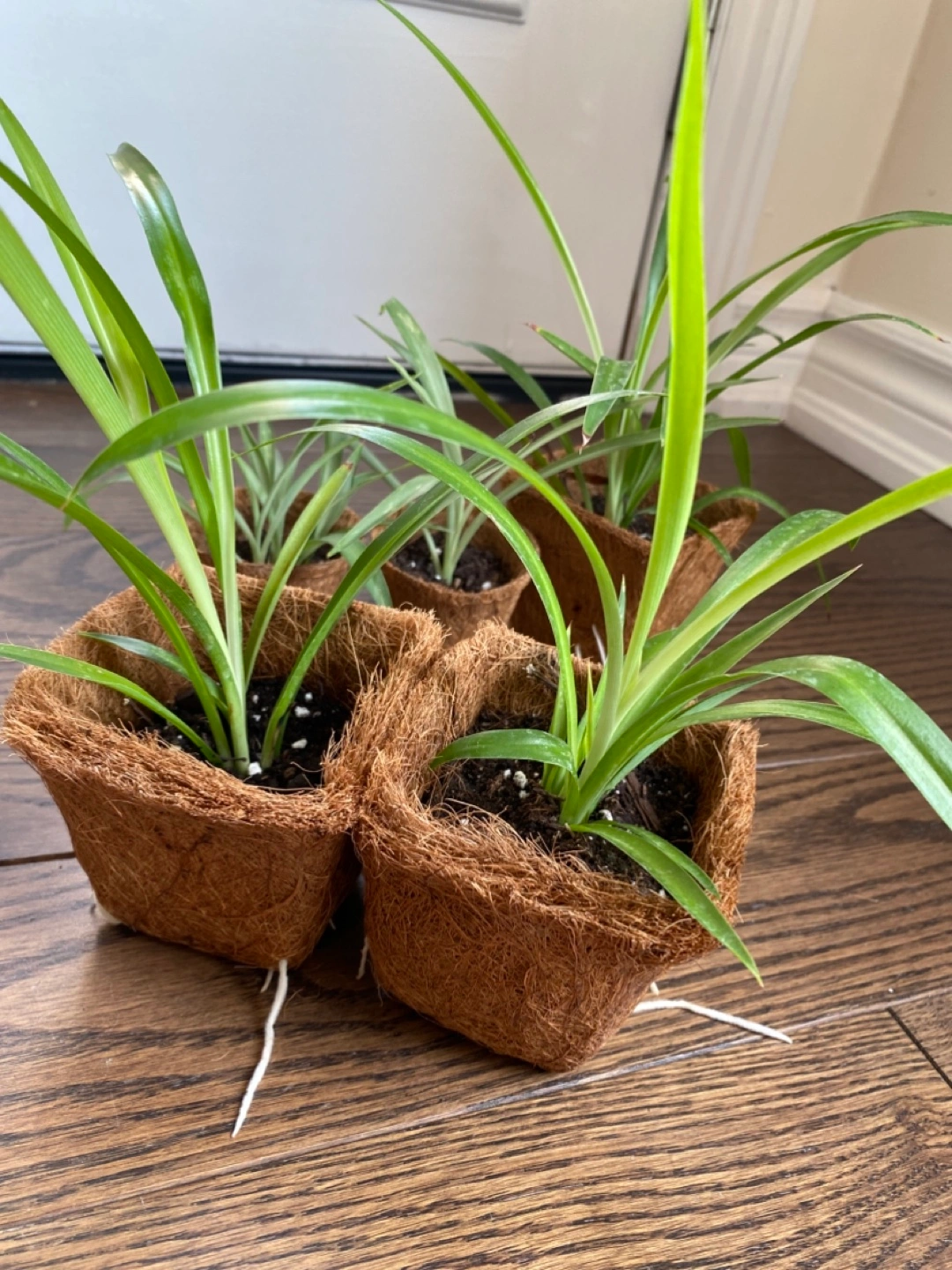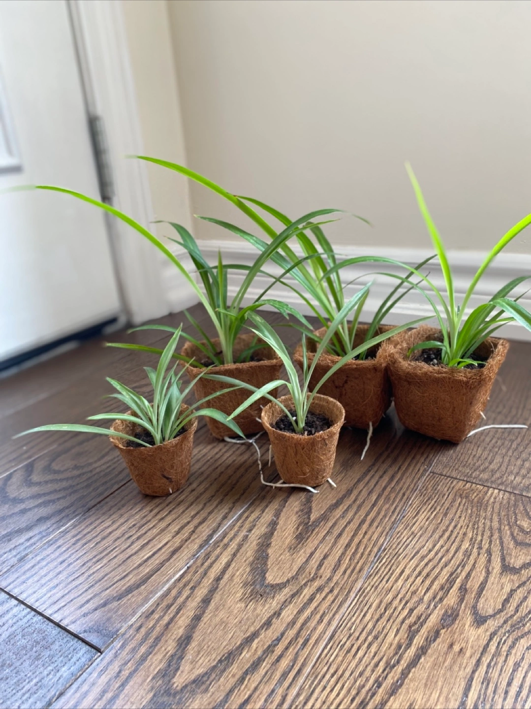 I have several spider plant babies that are rooted and ready for new homes! These little guys are easy to care for and great for adding some greenery to your space. They're potted in small, biodegradable cocohusk pots. Small pots - $3 or 2 for $5 Large square pots -$4 or 3 for $10