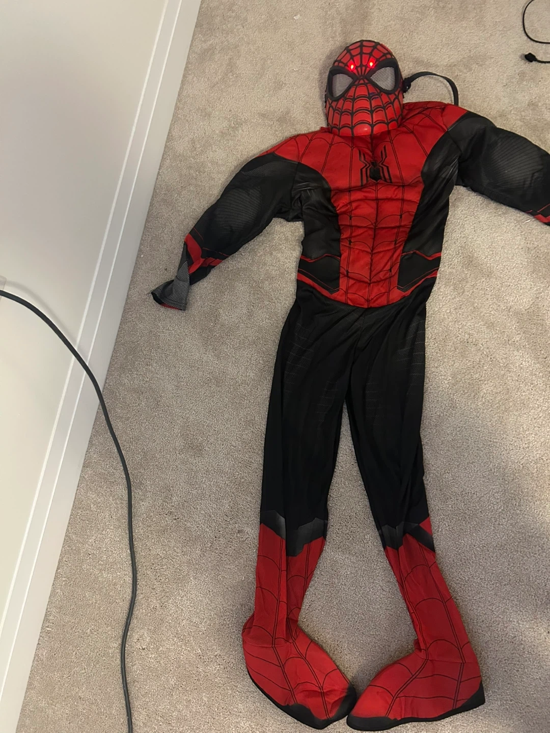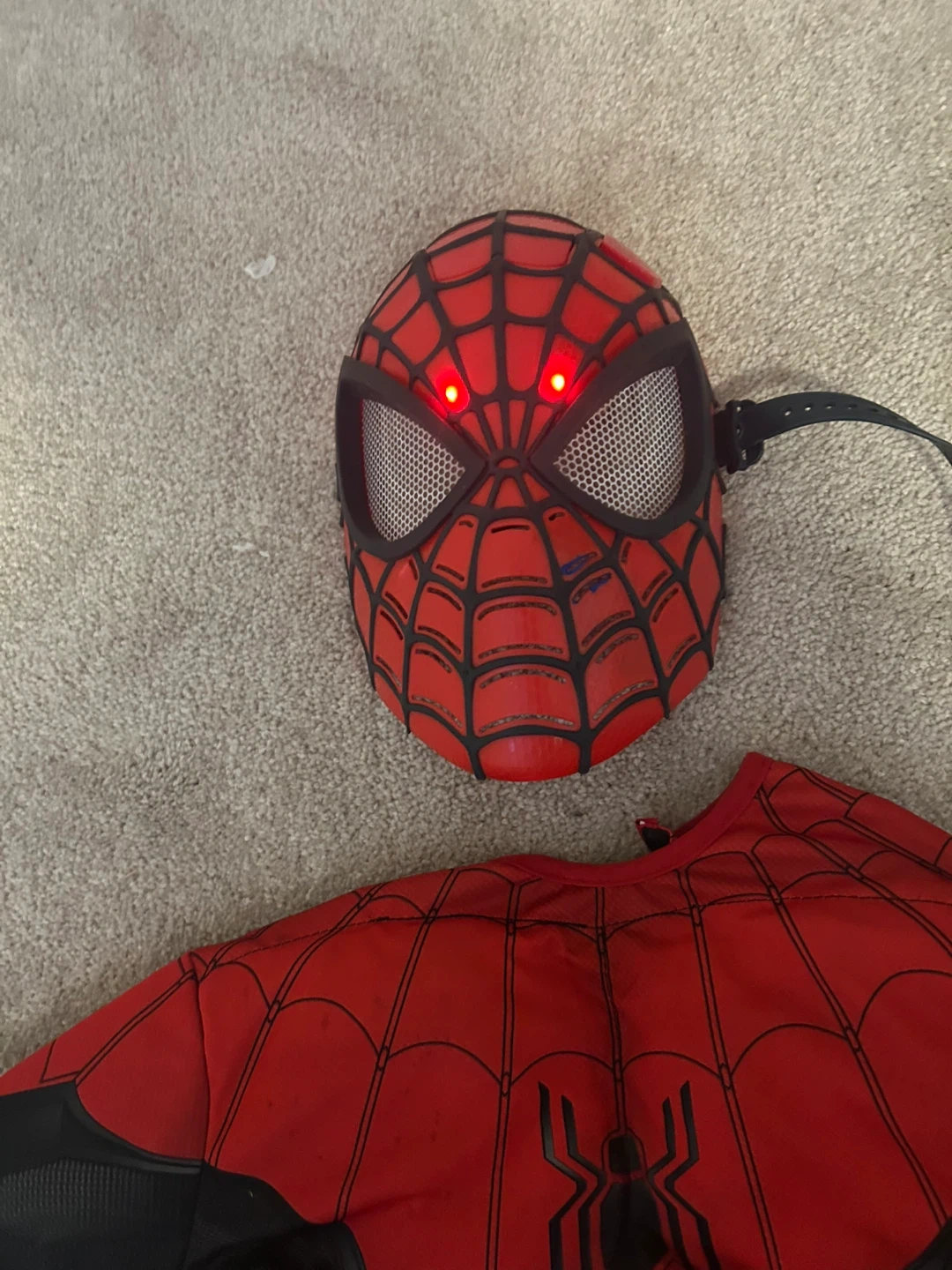 Selling a Spiderman costume that comes with a light-up mask! It's in great condition and ready for a new superhero in training