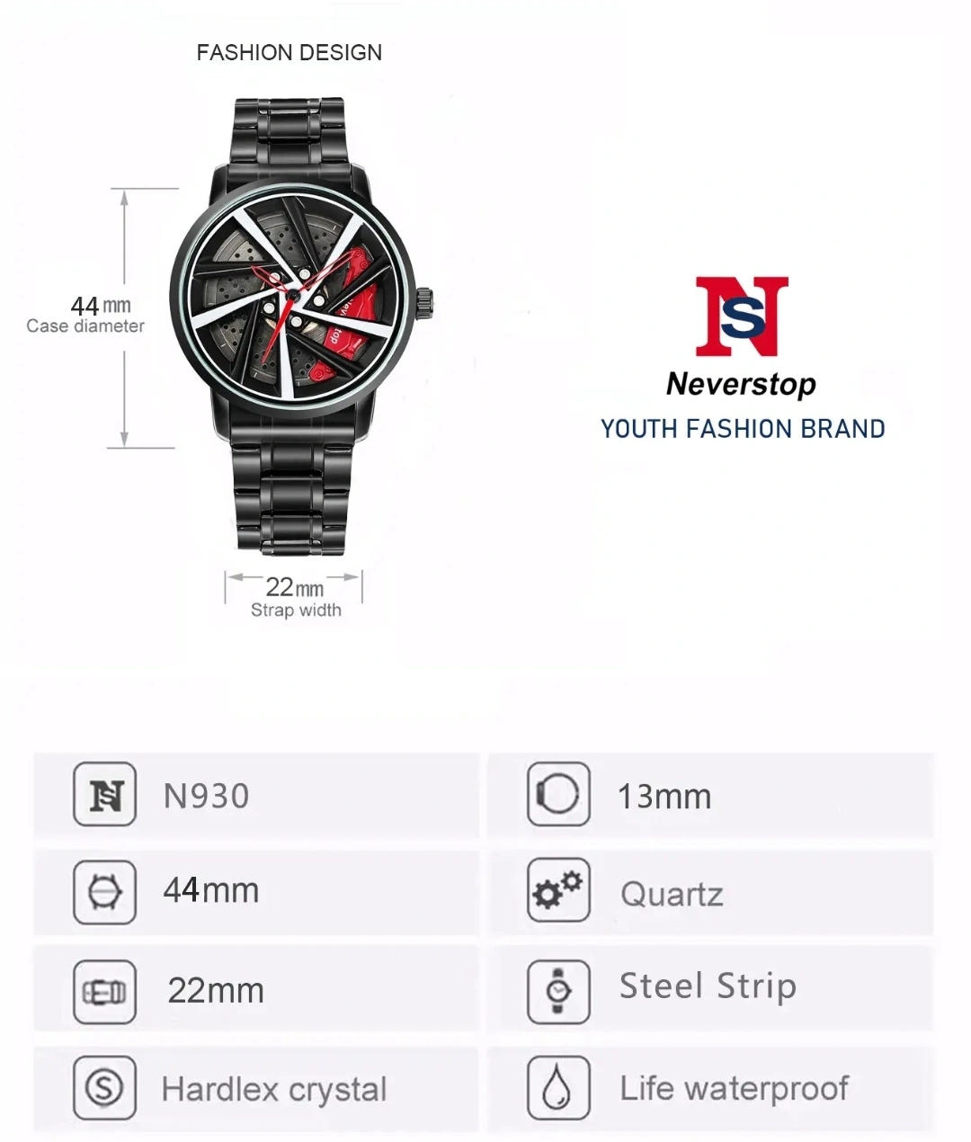 Brantford new watch. looks like a car wheel. spins with flick of wrist $50