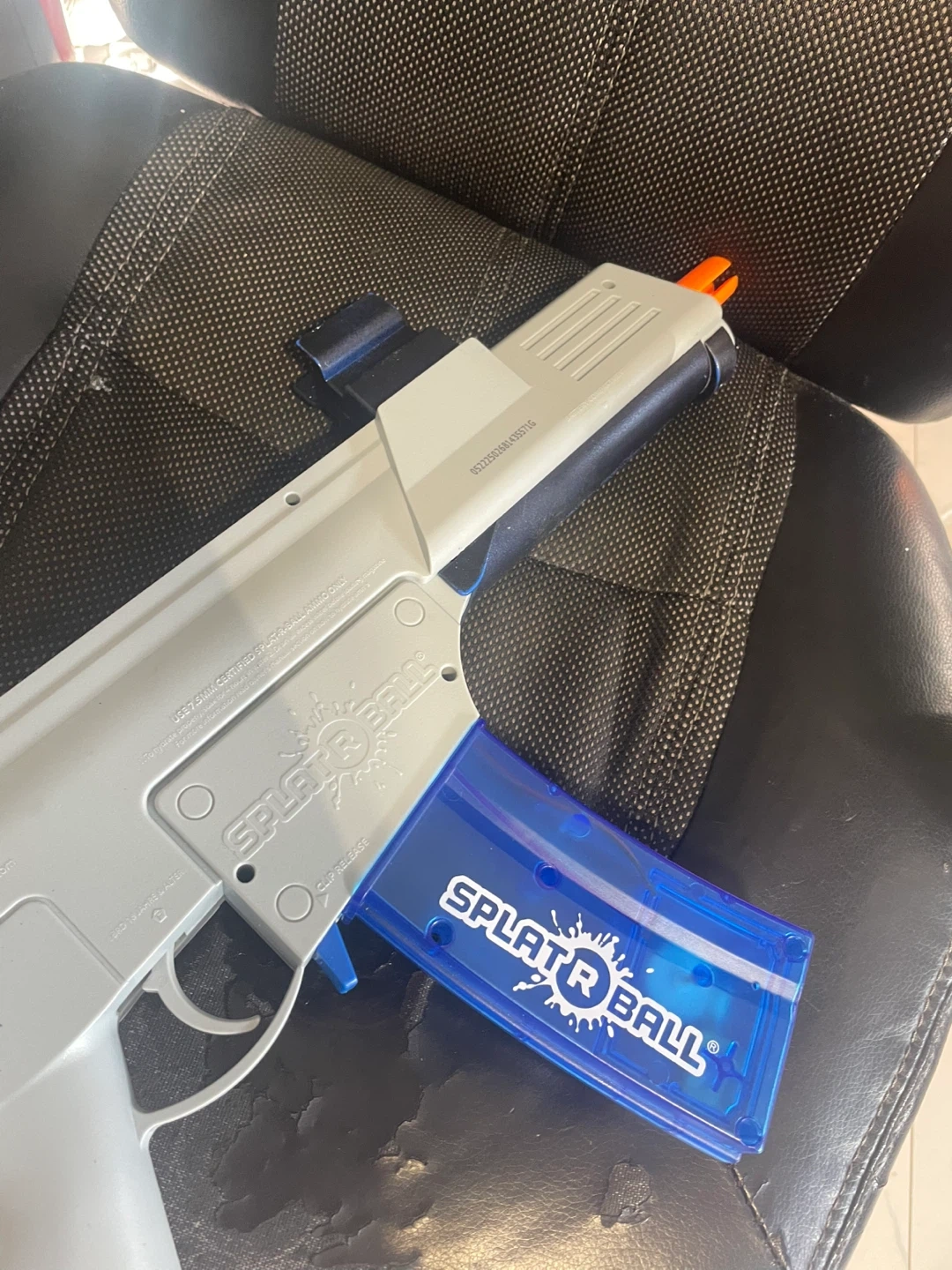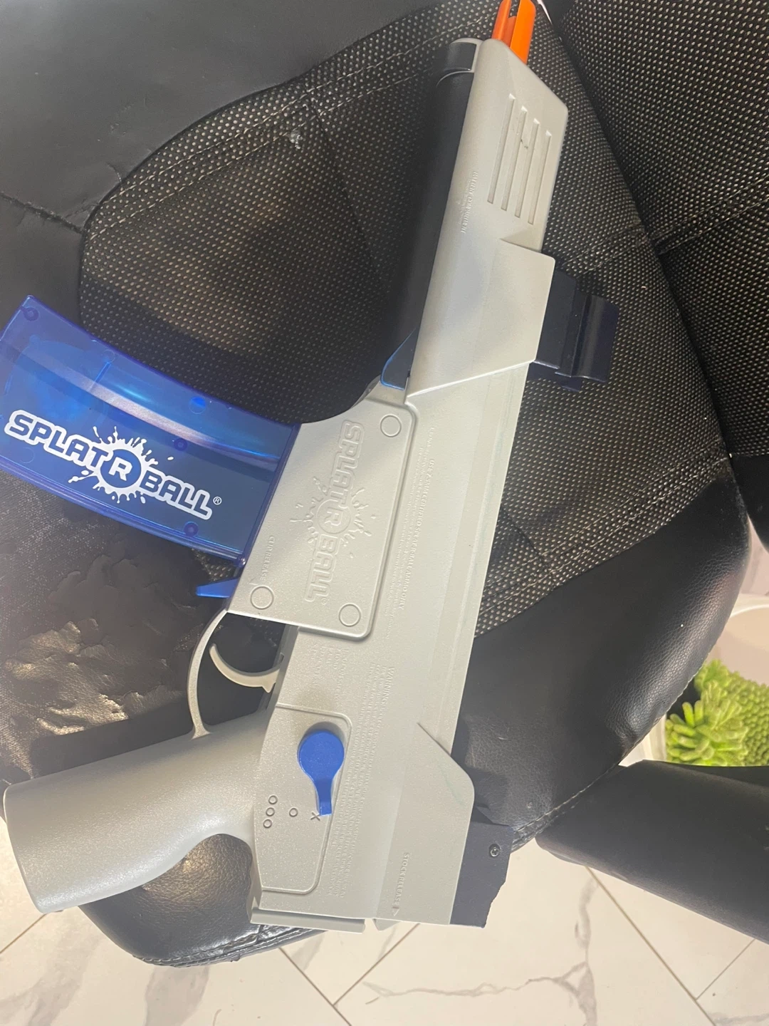 Selling a SPLAT R BALL full auto water bead blaster. It comes with safety glasses, 10,000 dehydrated splatr beads, 7.4V 1800mAh rechargeable battery, and a battery charging cable