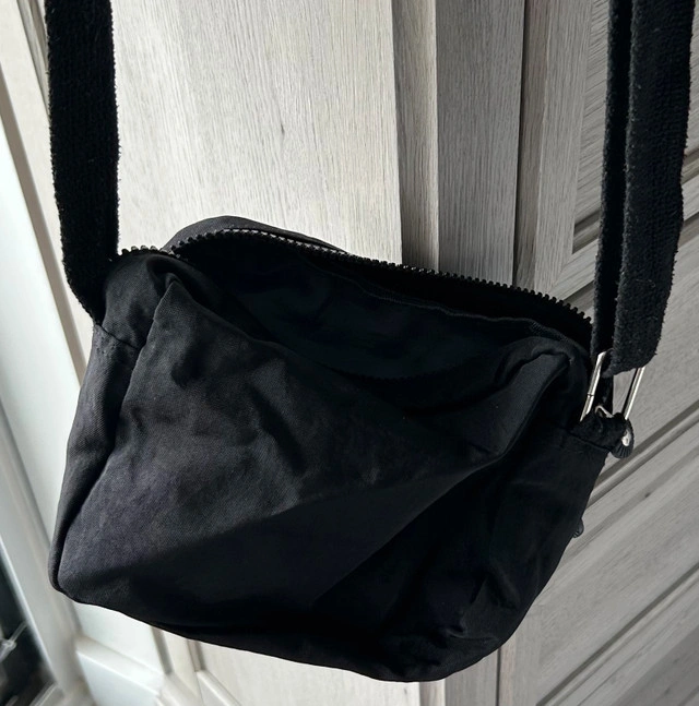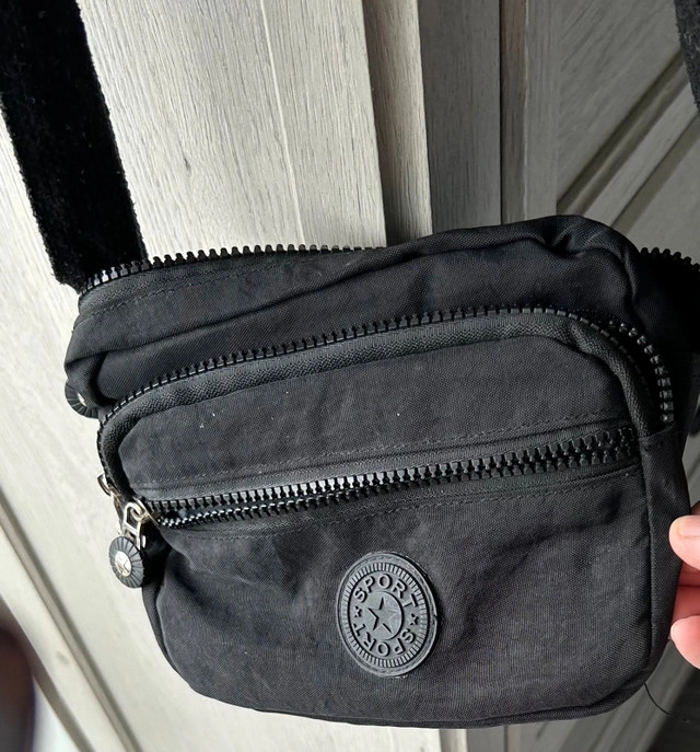 Check out this stylish Sport crossbody bag in classic black, perfect for keeping your essentials close at hand! This bag is in used condition but still has plenty of life left for your daily adventures. Features: * Durable nylon material * Multiple zippered compartments * Adjustable shoulder strap