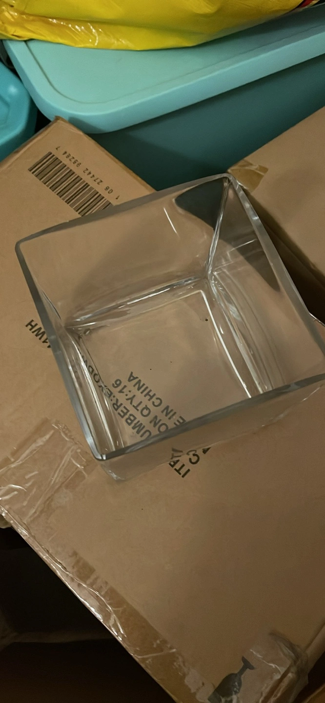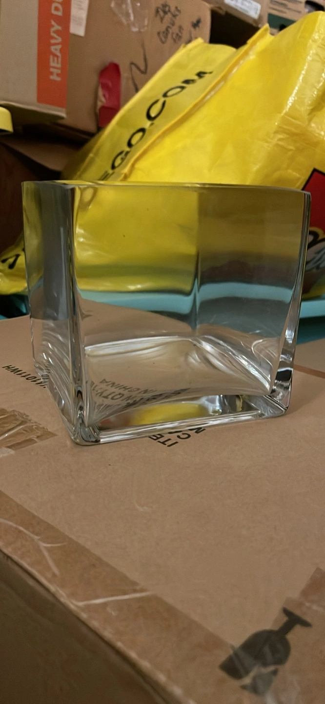 Selling a square glass vase. It's in great shape and ready to add a touch of elegance to your space. Perfect for displaying flowers or as a decorative piece on its own