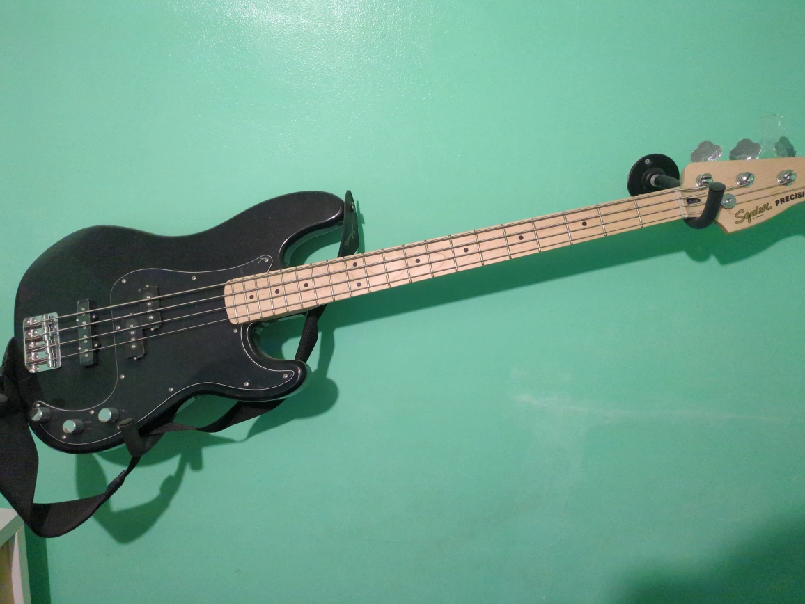 Selling a Squier Precision Bass in black. It's in great shape and ready for a new home! Perfect for anyone looking to start playing bass or add to their collection. Feel free to reach out if you're interested!( Amp and and cover included. )