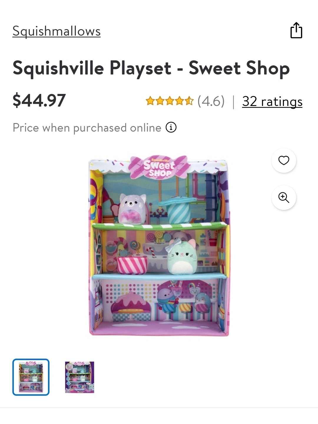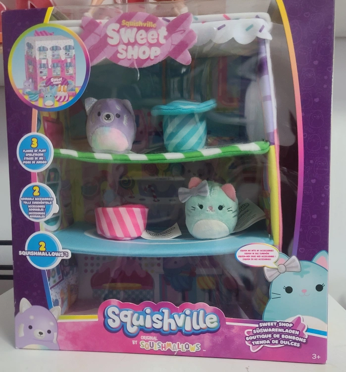 Selling a Squishville Playset - Sweet Shop! It includes 3 floors of play, 2 adorable accessories, and 2 Squishmallows! It's perfect for kids aged 3+
