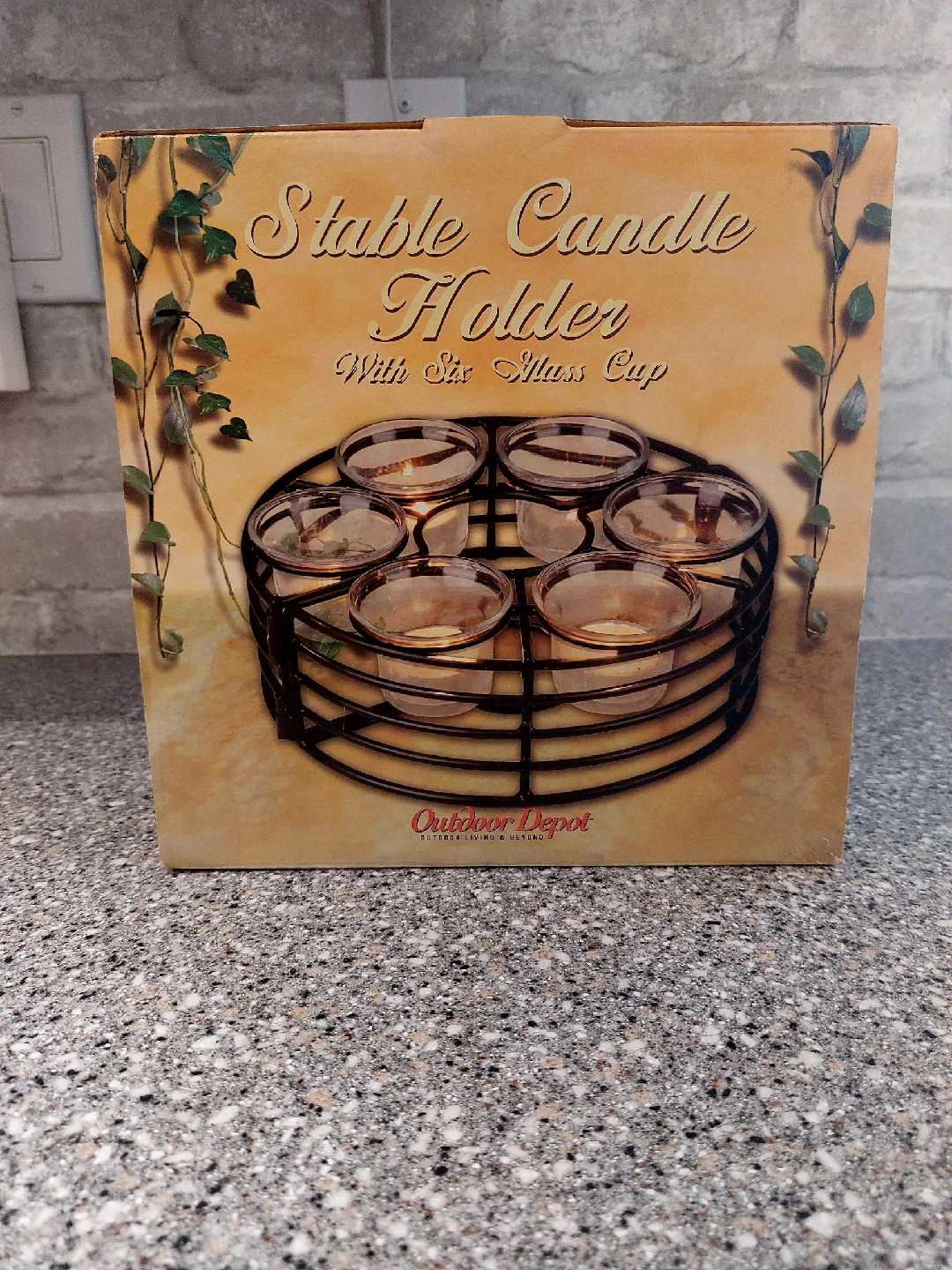 Selling a candle holder with six glass votive cups. It's in great condition and comes with the original box. Perfect for adding a touch of warmth to your space, opens to fit around the umbrella pole. P/U near Blundell and Gilbert roads in Richmond. Door pickup only. Prefer cash please.