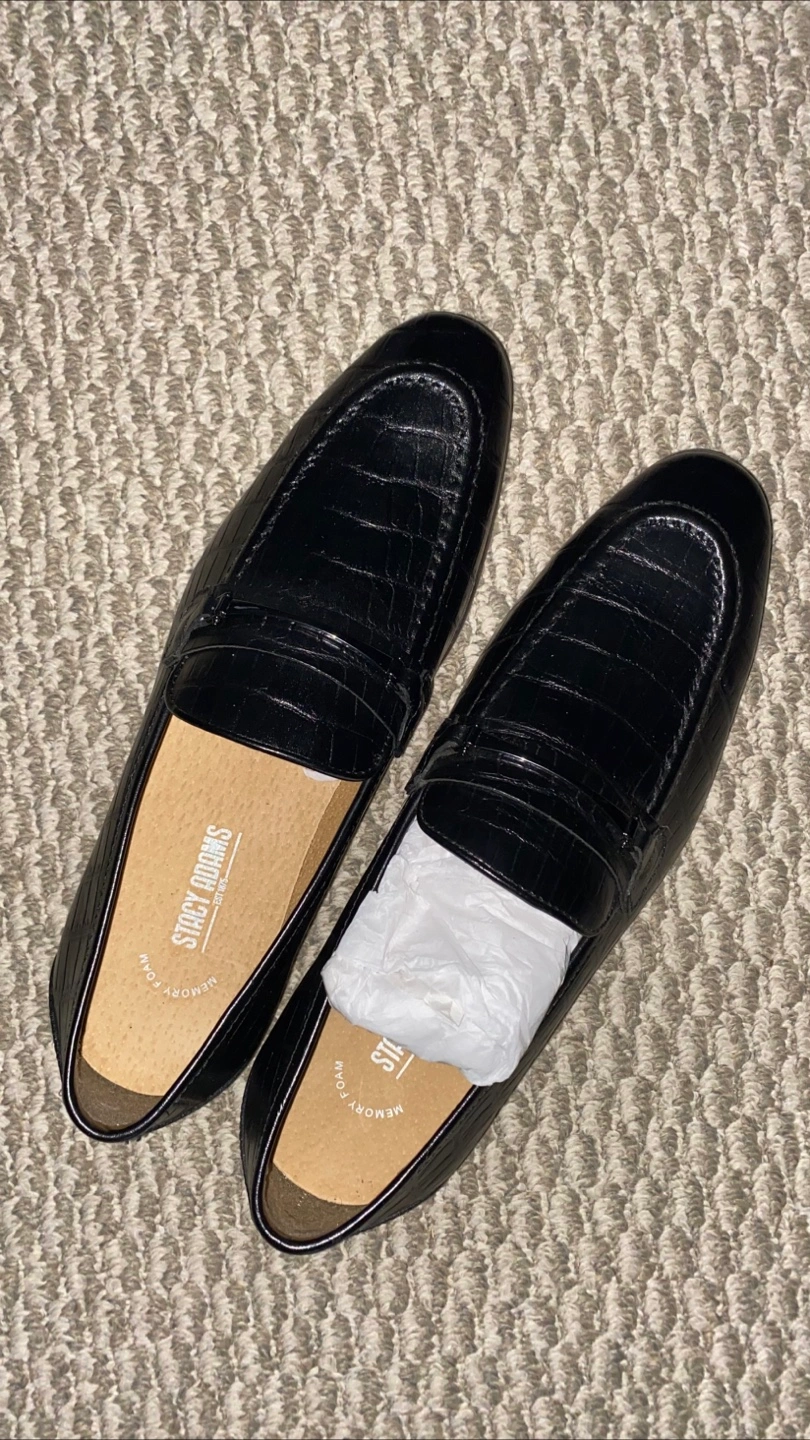 Classic black loafers by Stacy Adams, perfect for a polished look! These shoes feature a memory foam insole for extra comfort. They are brand new and ready for a new home