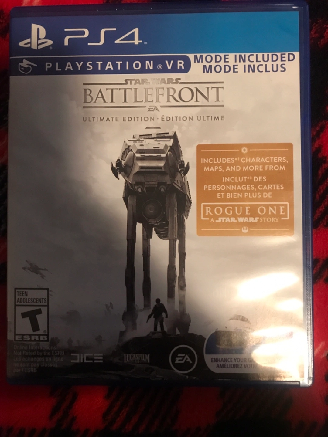 Selling Star Wars Battlefront Ultimate Edition for the PlayStation 4 (PS4). Includes characters, maps, and more from Rogue One: A Star Wars Story! ESRB rating: Teen