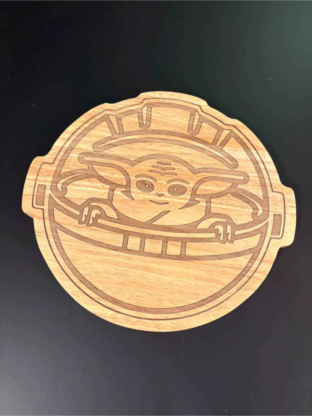 Selling a cute Star Wars themed cutting board! It features an engraving of Grogu, also known as Baby Yoda, in his carrier. Perfect for any Star Wars fan!