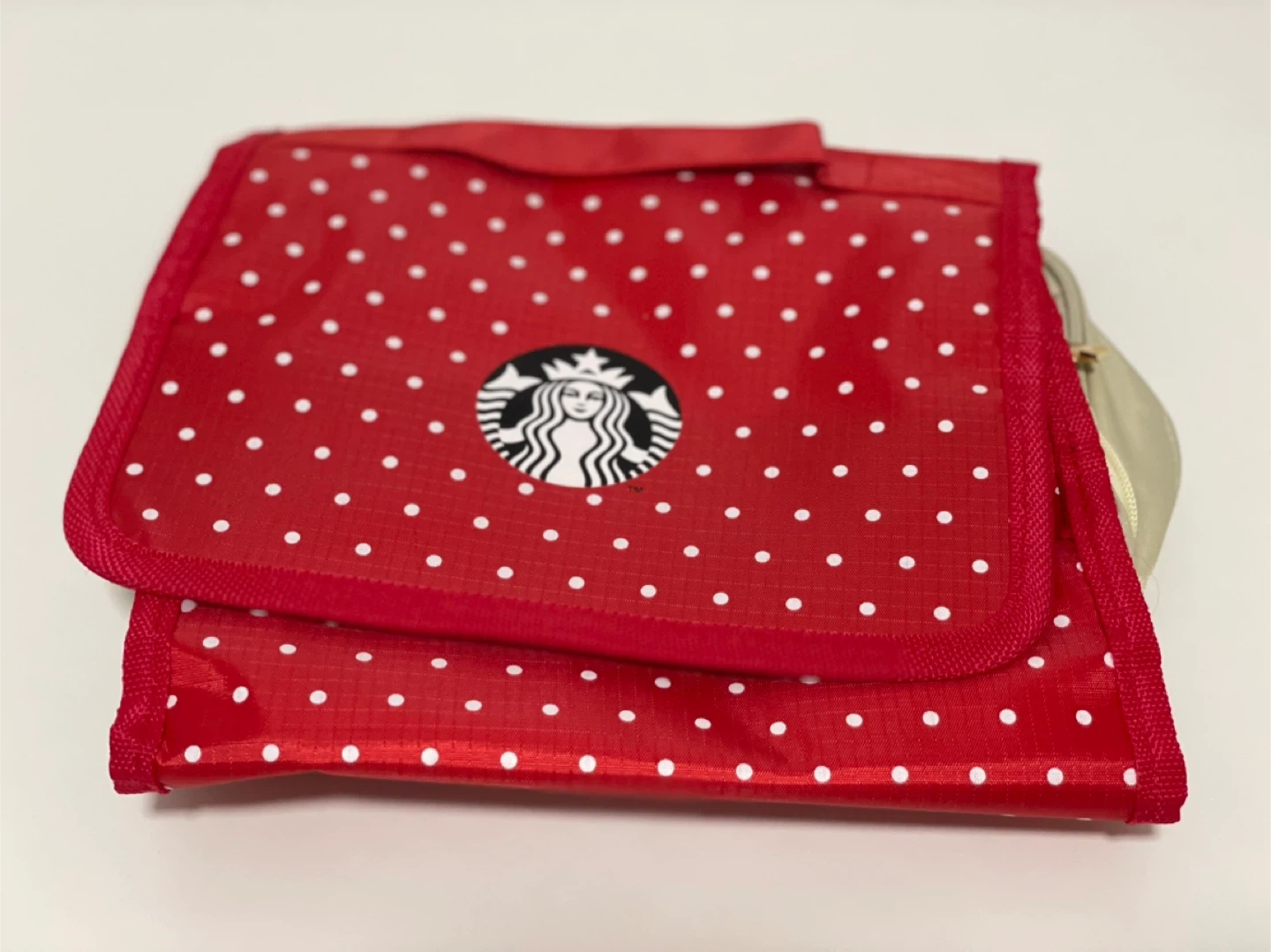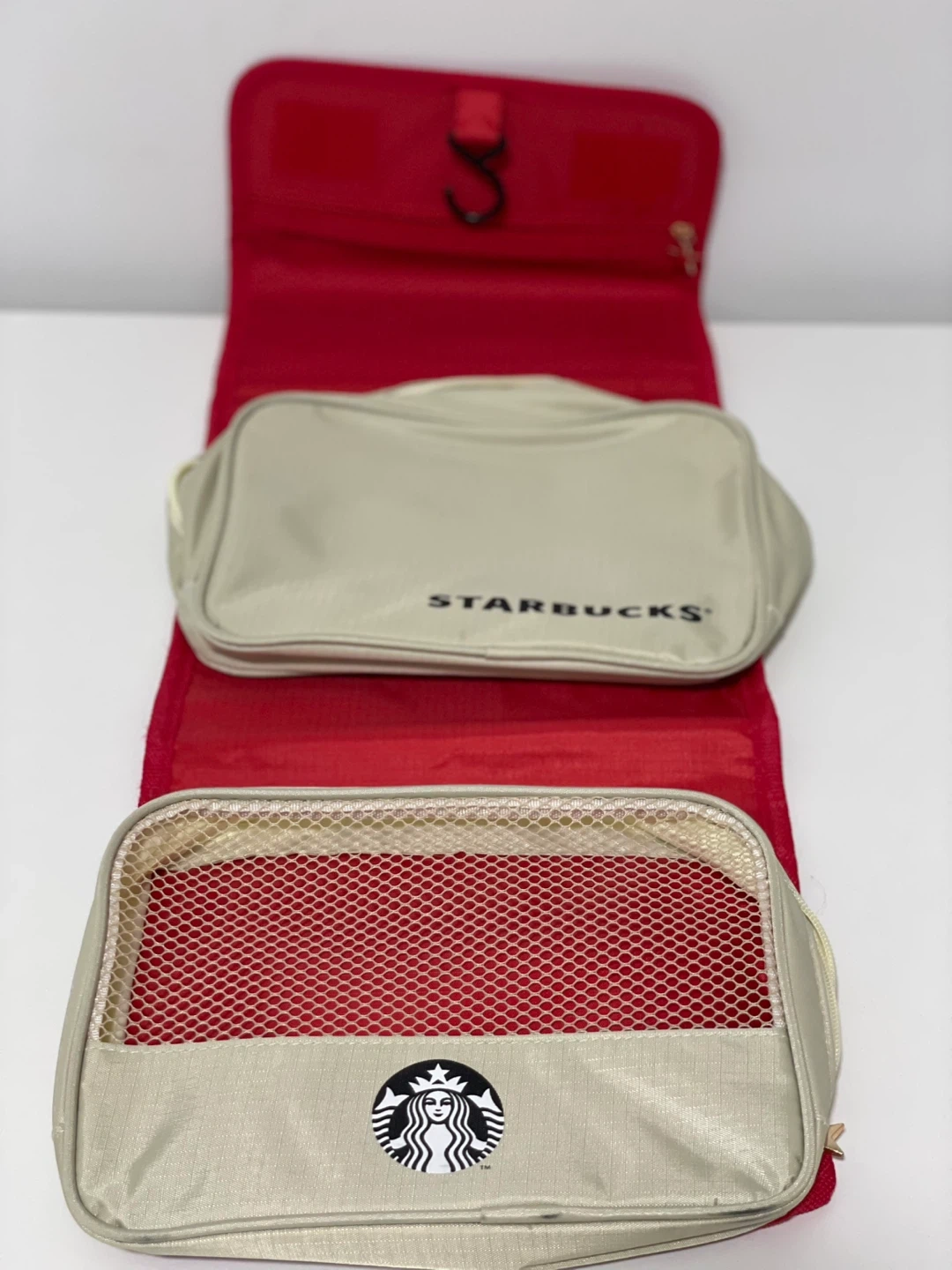 Selling a cute Starbucks toiletry bag! It's red with white polka dots and features the Starbucks logo. Perfect for travel or organizing your essentials. 23 x 20 (full 66) x 7 cm Pick-up near Brentwood station please. (2181 Madison Ave)