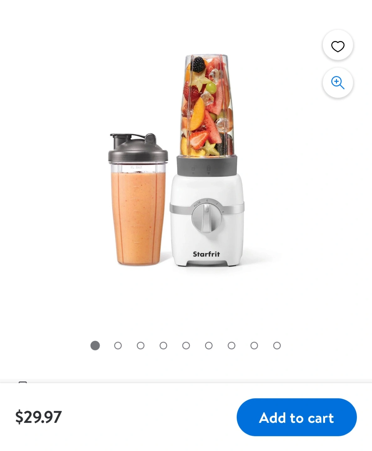 Looking to make smoothies or shakes on the go? This Starfrit personal blender is perfect for you! It comes with a blending jar and a travel lid, so you can easily take your creations with you. It's in great condition and ready for a new home
