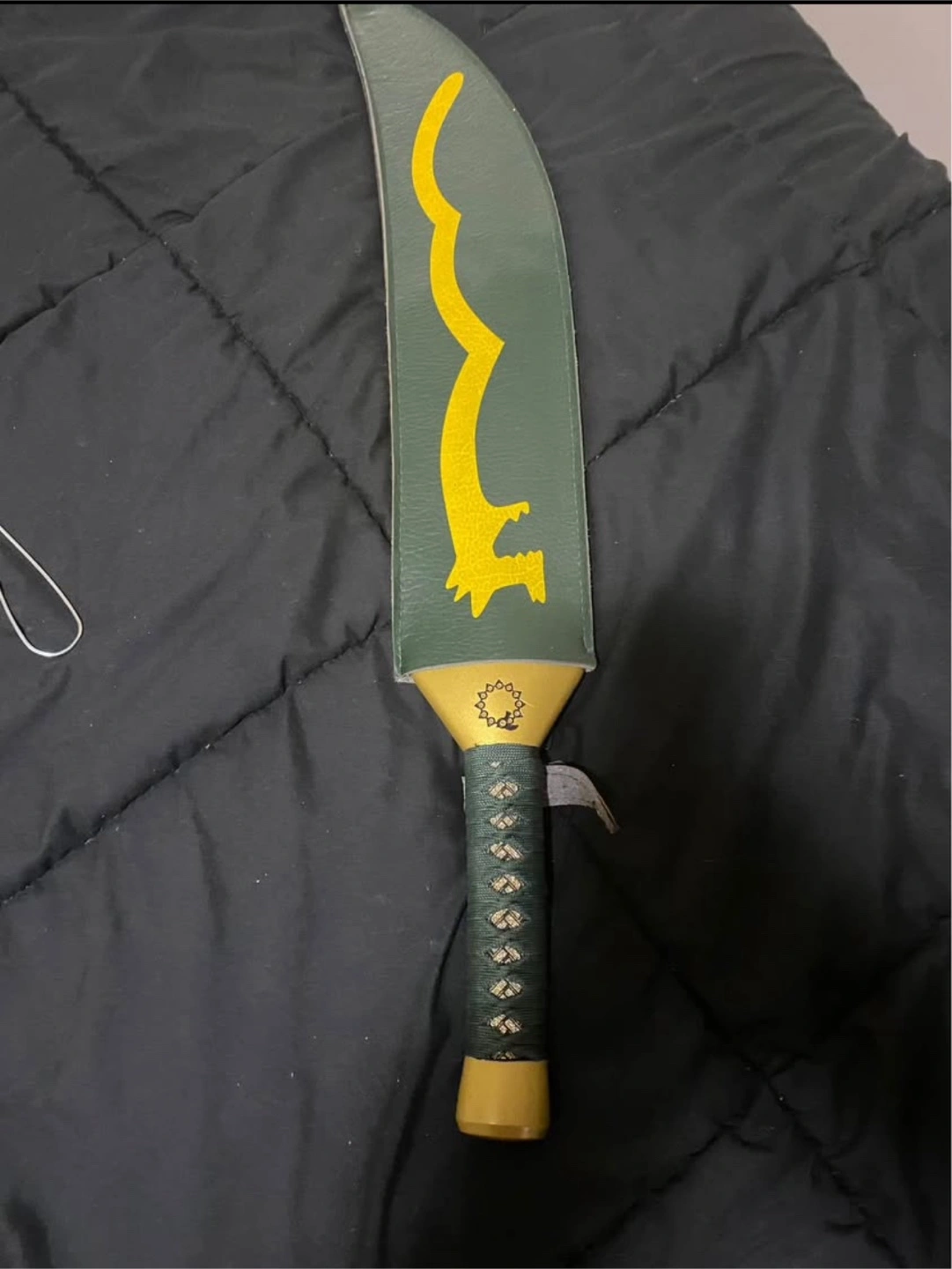Selling a decorative sword with a sheath. The handle is wrapped and the sheath has a unique design on it. It's a cool piece for display! From the anime seven deadly sins.