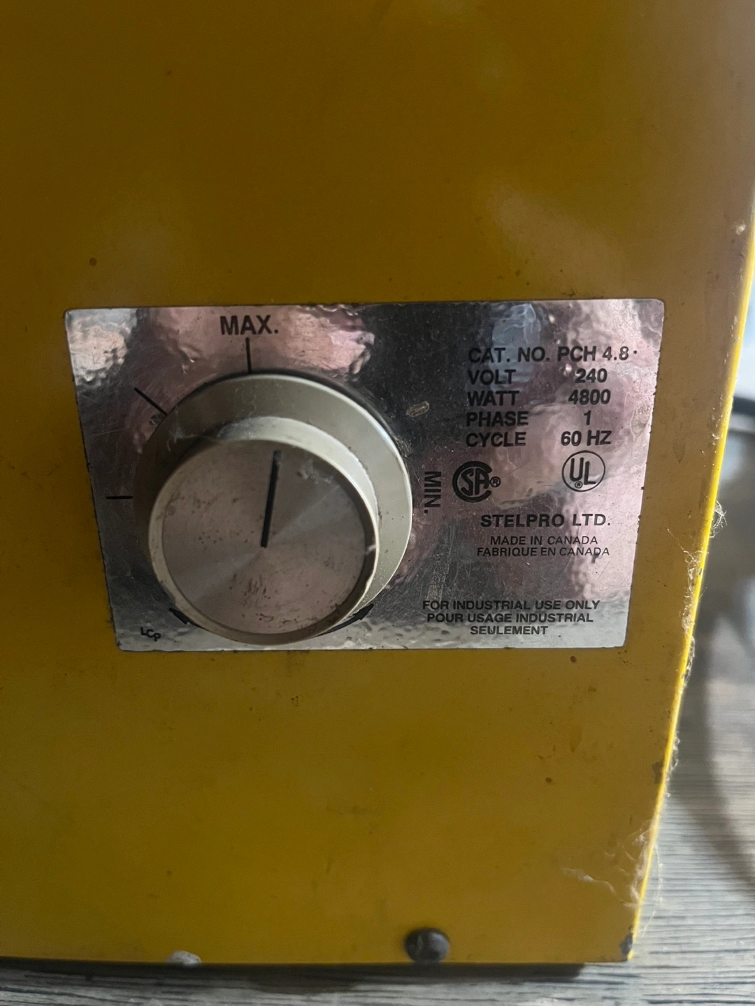 Selling a Stelpro industrial heater. Rated for: - 240 Volts - 4800 Watts - 1 Phase - 60 Hz