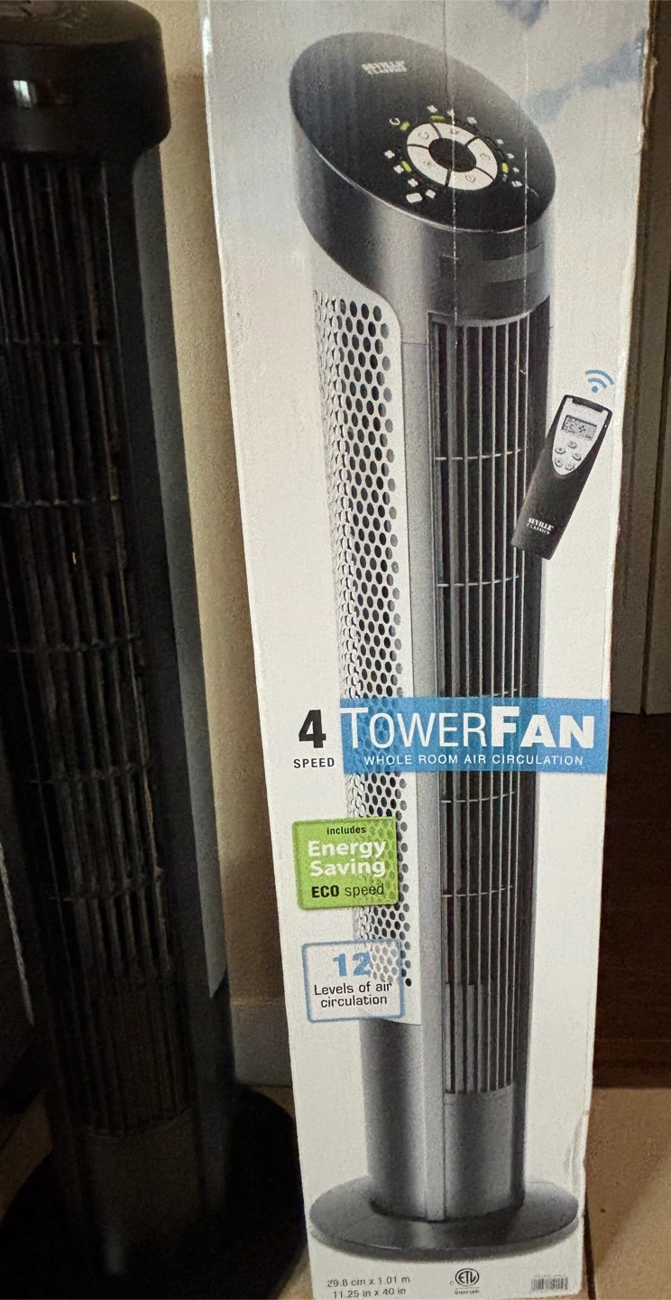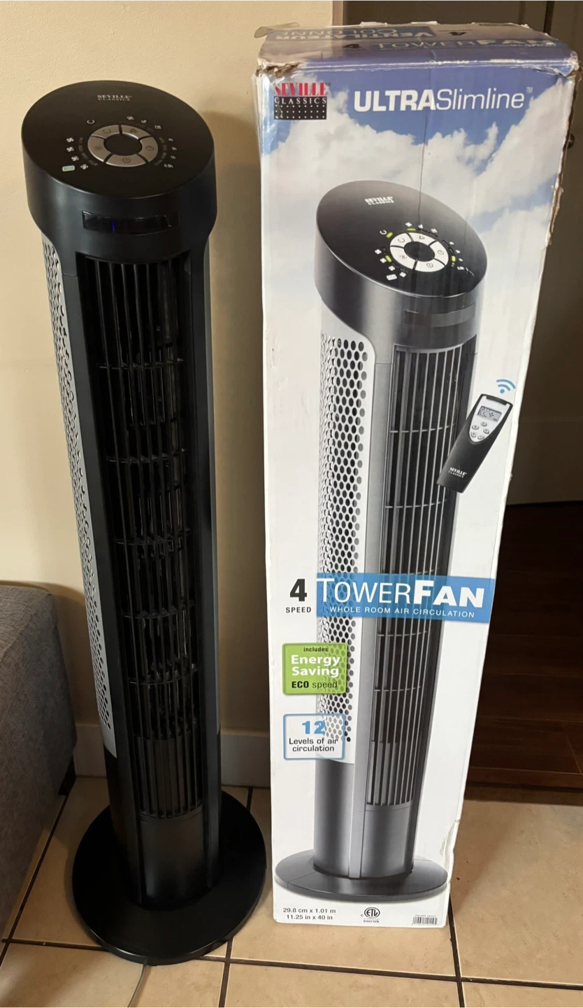 I'm selling a Stelpro Ultra Slimline tower fan! It has 4 speeds and 12 levels of air circulation. It also includes an energy-saving ECO speed setting. It's in great condition and comes with the box No remote