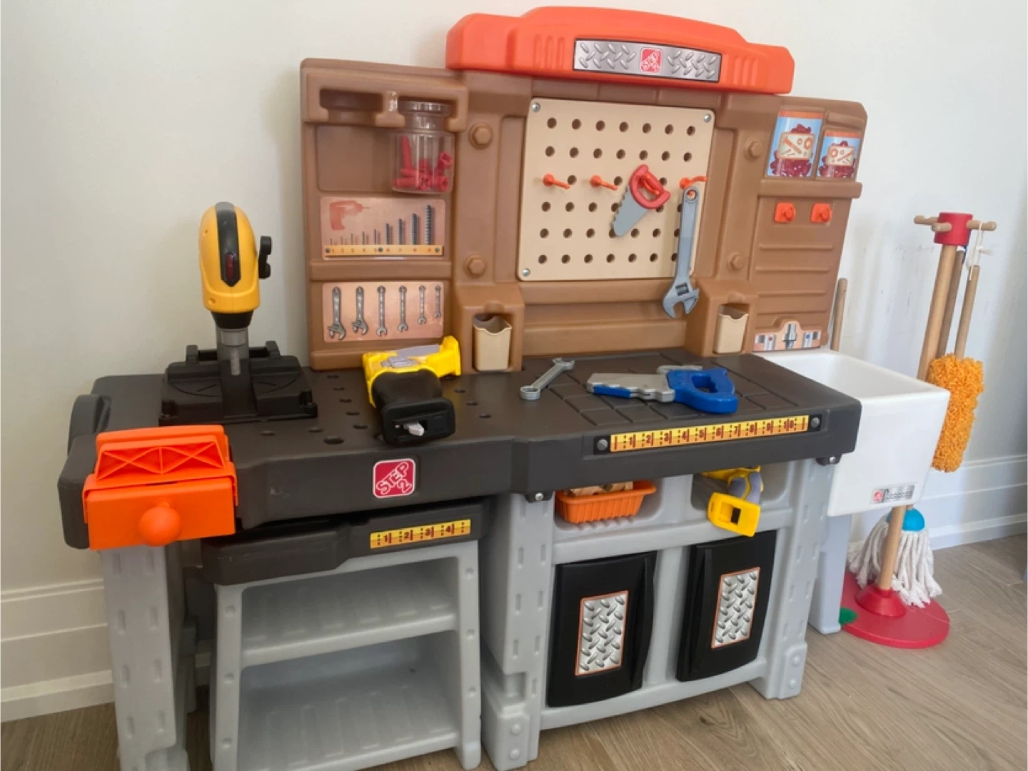 Selling a Step2 Big Builders Pro Workshop! It's in great shape and ready for a new little builder. This workshop is packed with features to keep kids entertained for hours. Includes a variety of tools and accessories for imaginative play