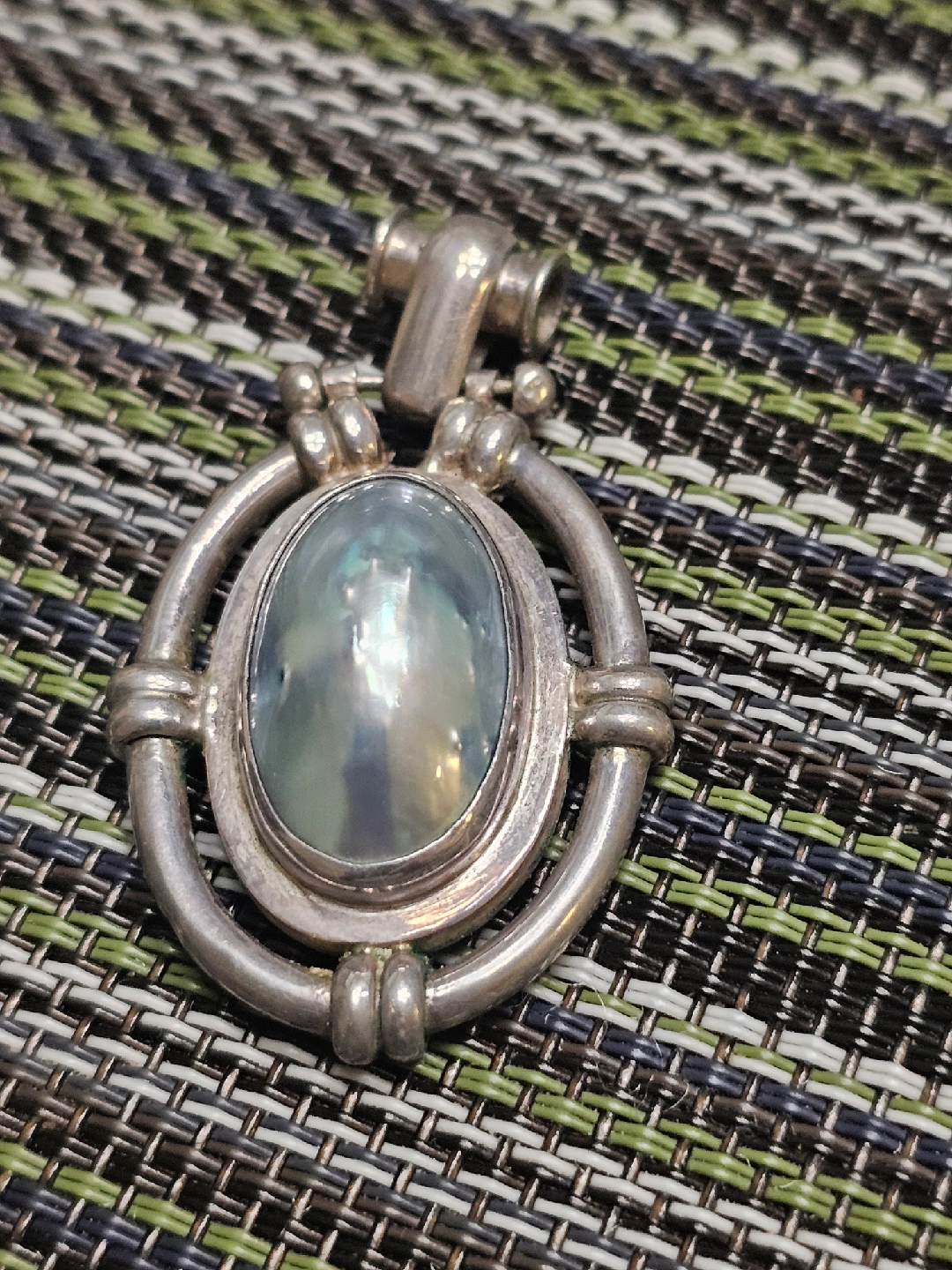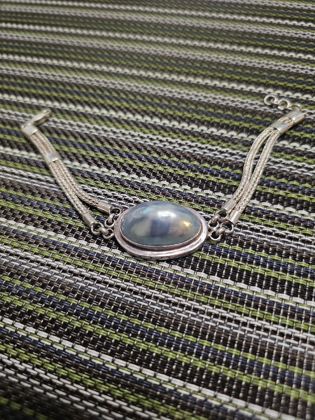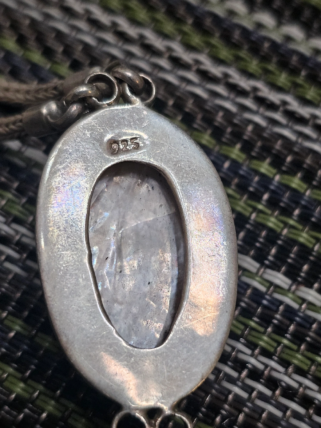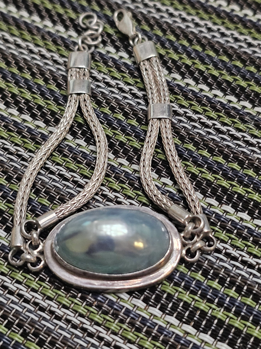 Selling a lovely sterling silver bracelet and pendant. Both are marked with '925', indicating sterling silver. They have a unique design and are in great condition!