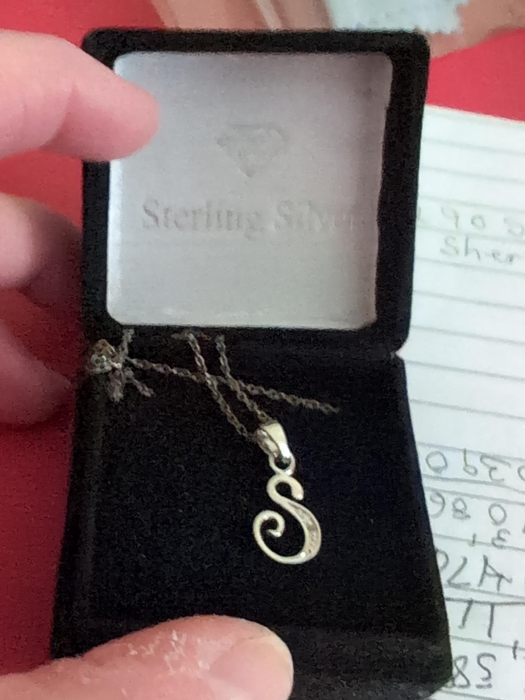 Selling a Sterling Silver necklace with an 'S' initial pendant. It comes in a black velvet box. A lovely piece for yourself or as a gift!