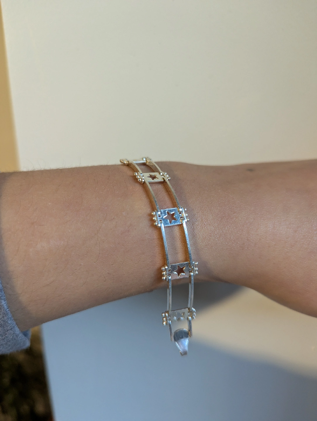 Selling a sterling silver bracelet. The clasp is marked '925'. It has a star design, in very good condition. Length is 6.5 in Pickup only