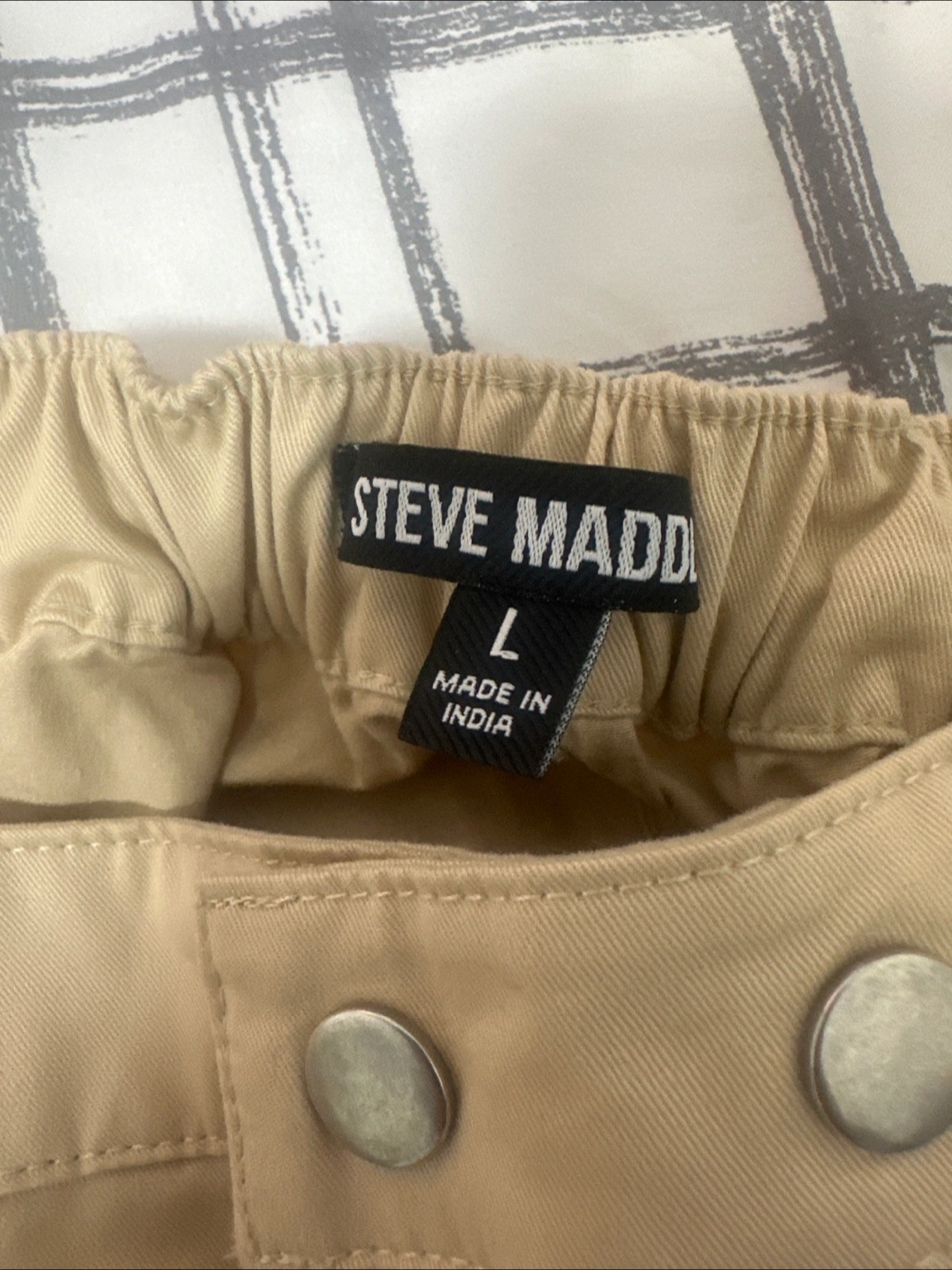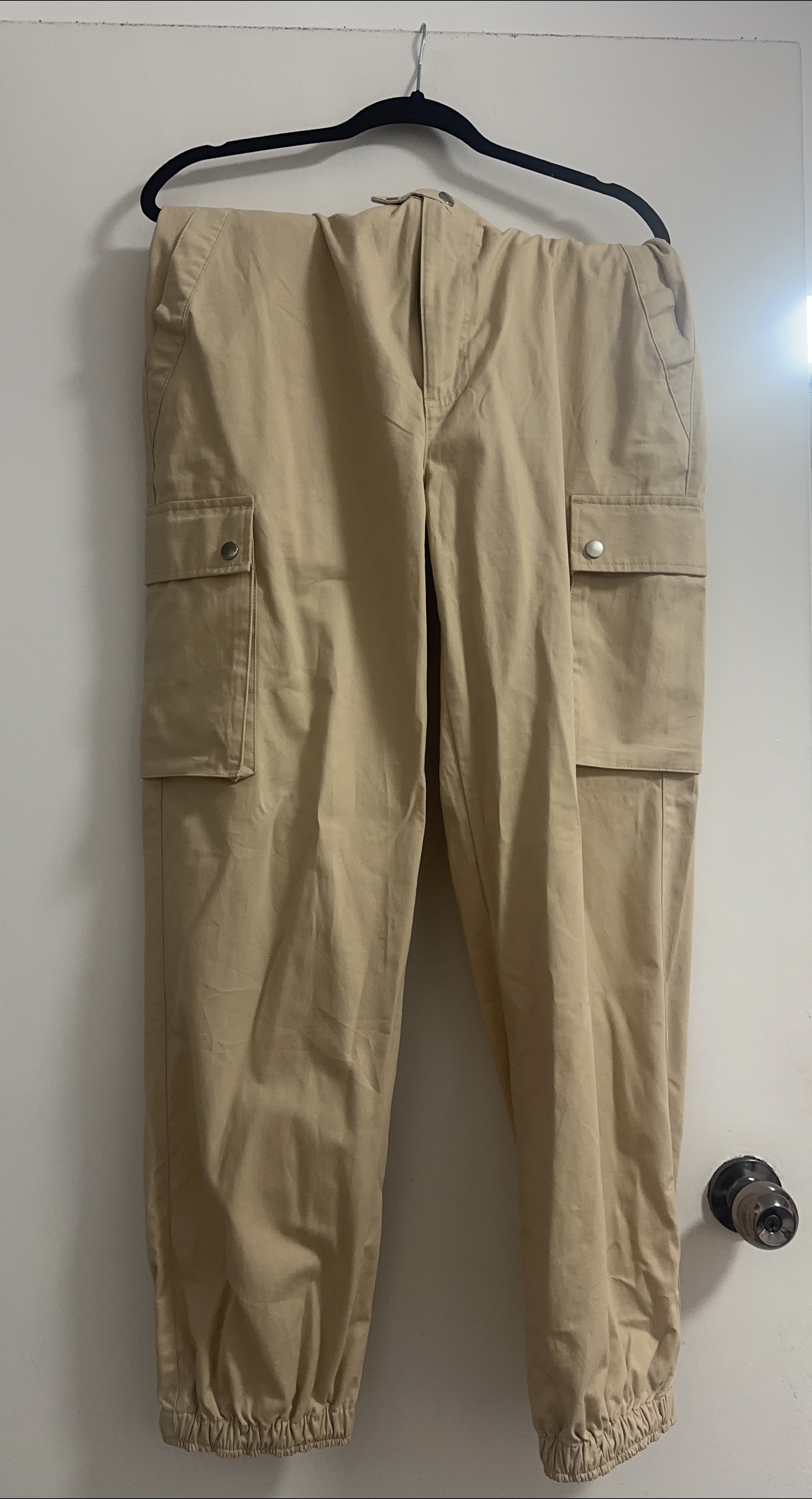 Selling a pair of Steve Madden cargo pants in a lovely beige colour! They're a size large and in great condition. Perfect for a casual, comfy look! Bought for originally $40 on sale