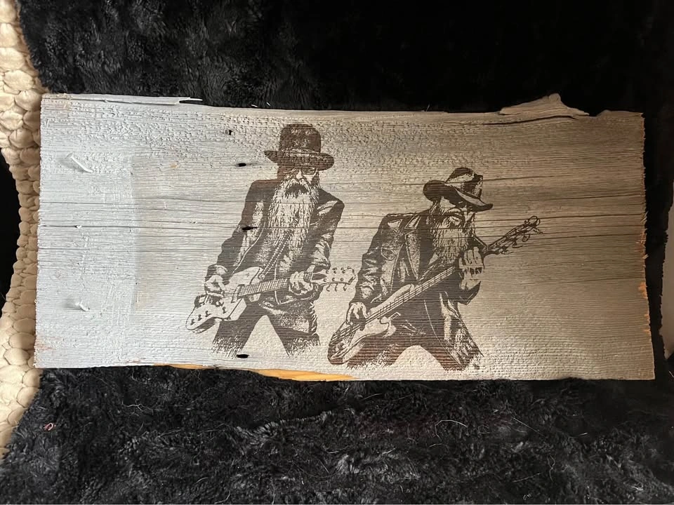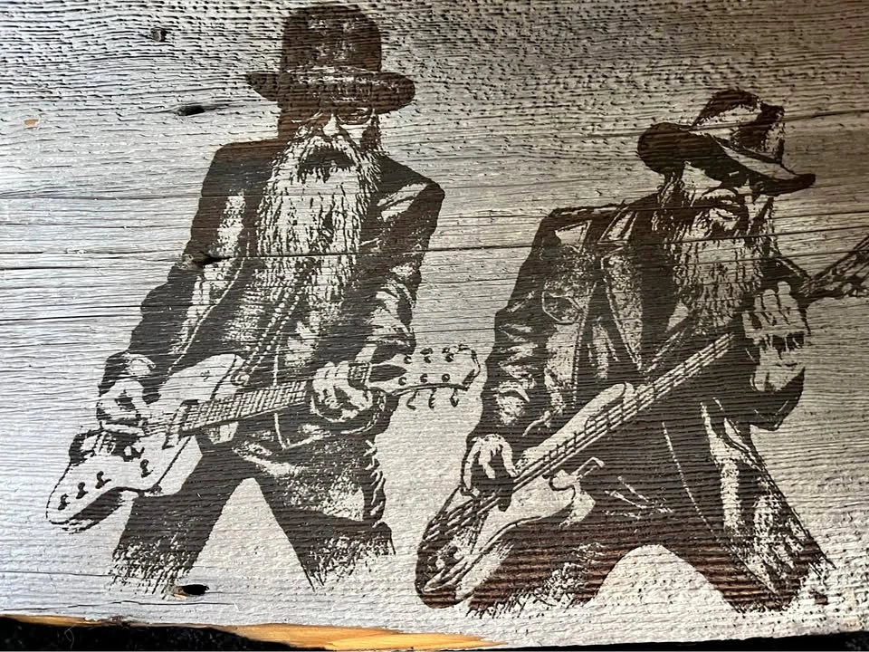 Large laser engraved ZZTop art on barn board