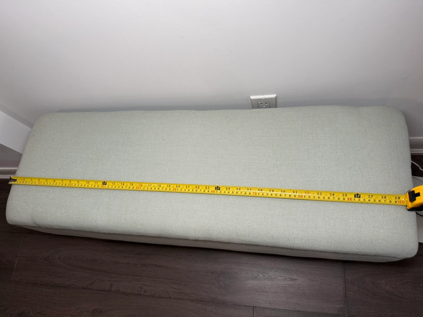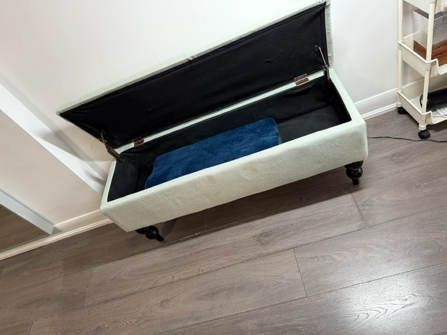 Here's a light blue green storage ottoman bench! It's in great shape and perfect for adding extra storage and seating to any room. The dimensions are approximately 39 inches long and 13 inches wide and 17” tall . It's a great piece to have!