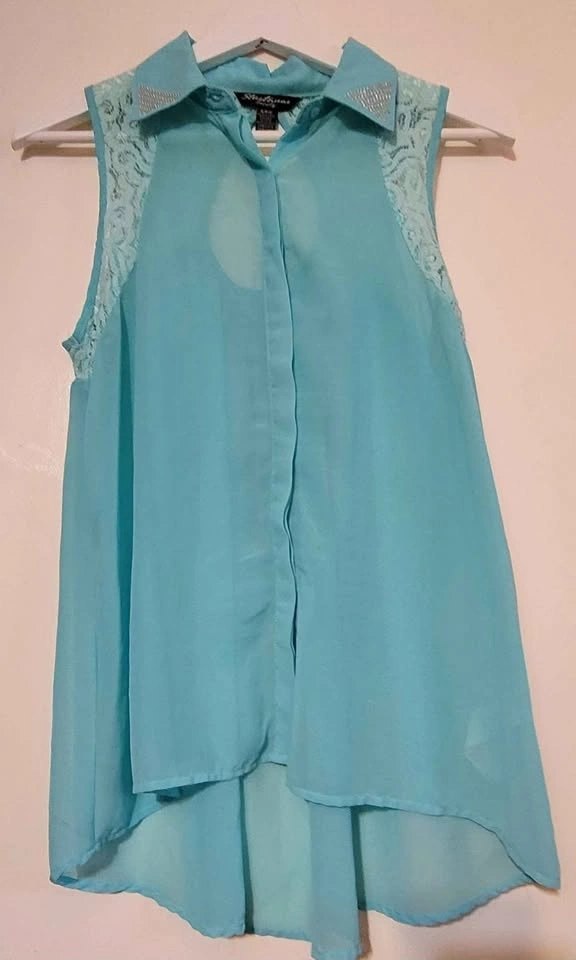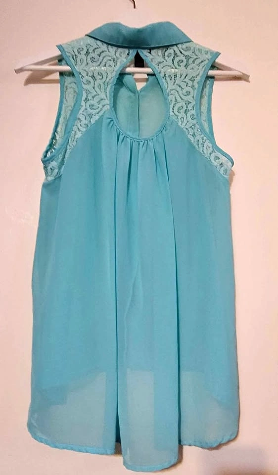 Sleeveless light blue blouse from Streetwear Society. It's a size small and features a lovely lace detail on the shoulders and a key hole back. The blouse is in great condition.