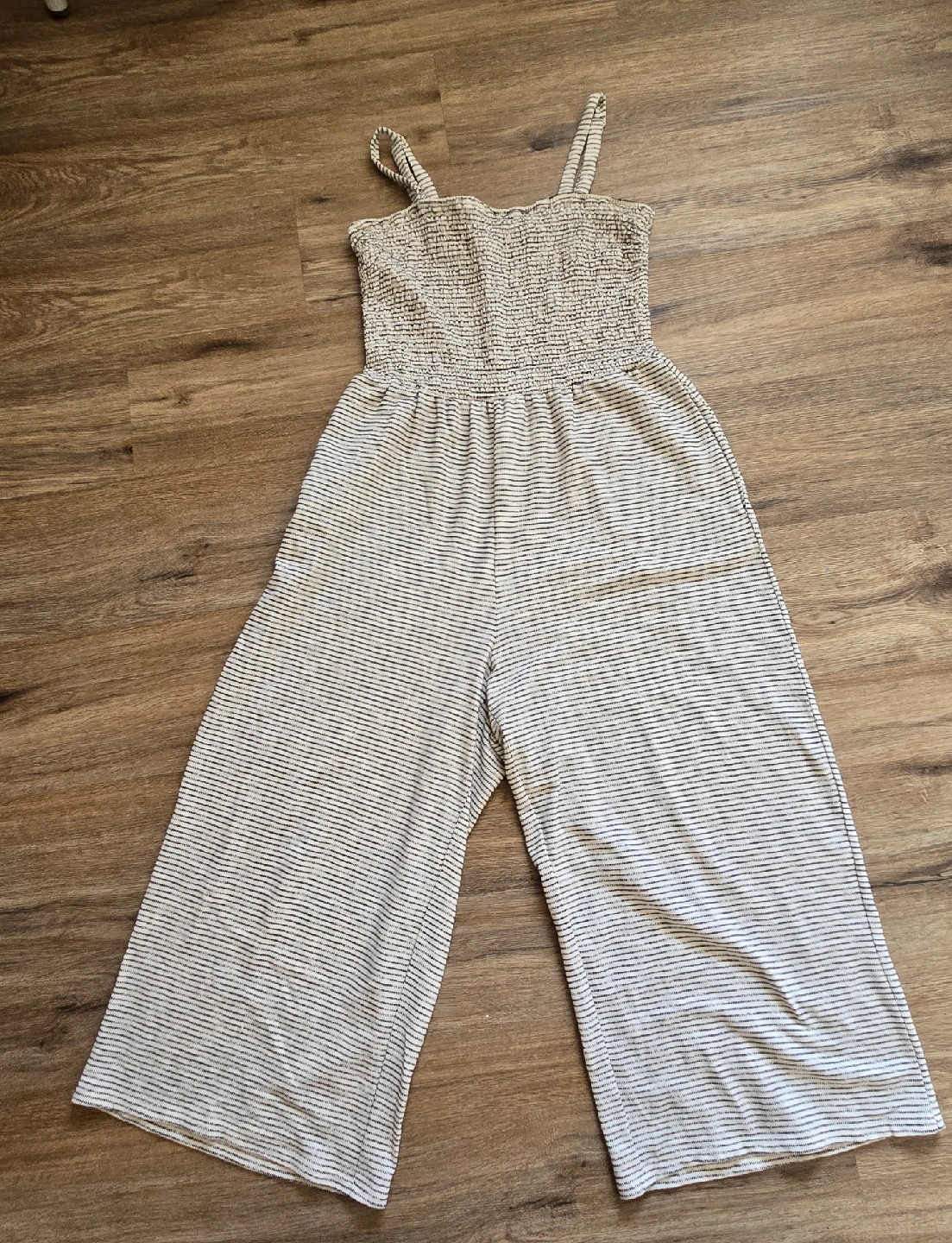 This is a cute and comfy striped jumpsuit! It features a smocked bodice and wide legs. Perfect for a casual summer day