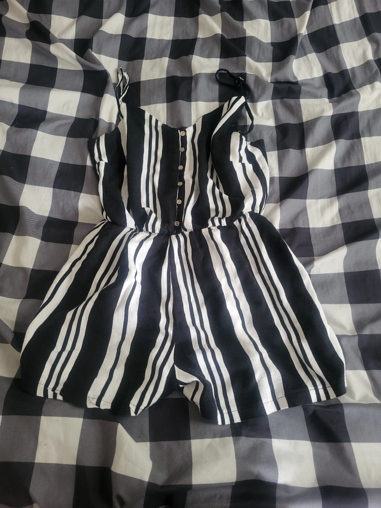Cute black and white striped romper with adjustable straps! Perfect for summer days