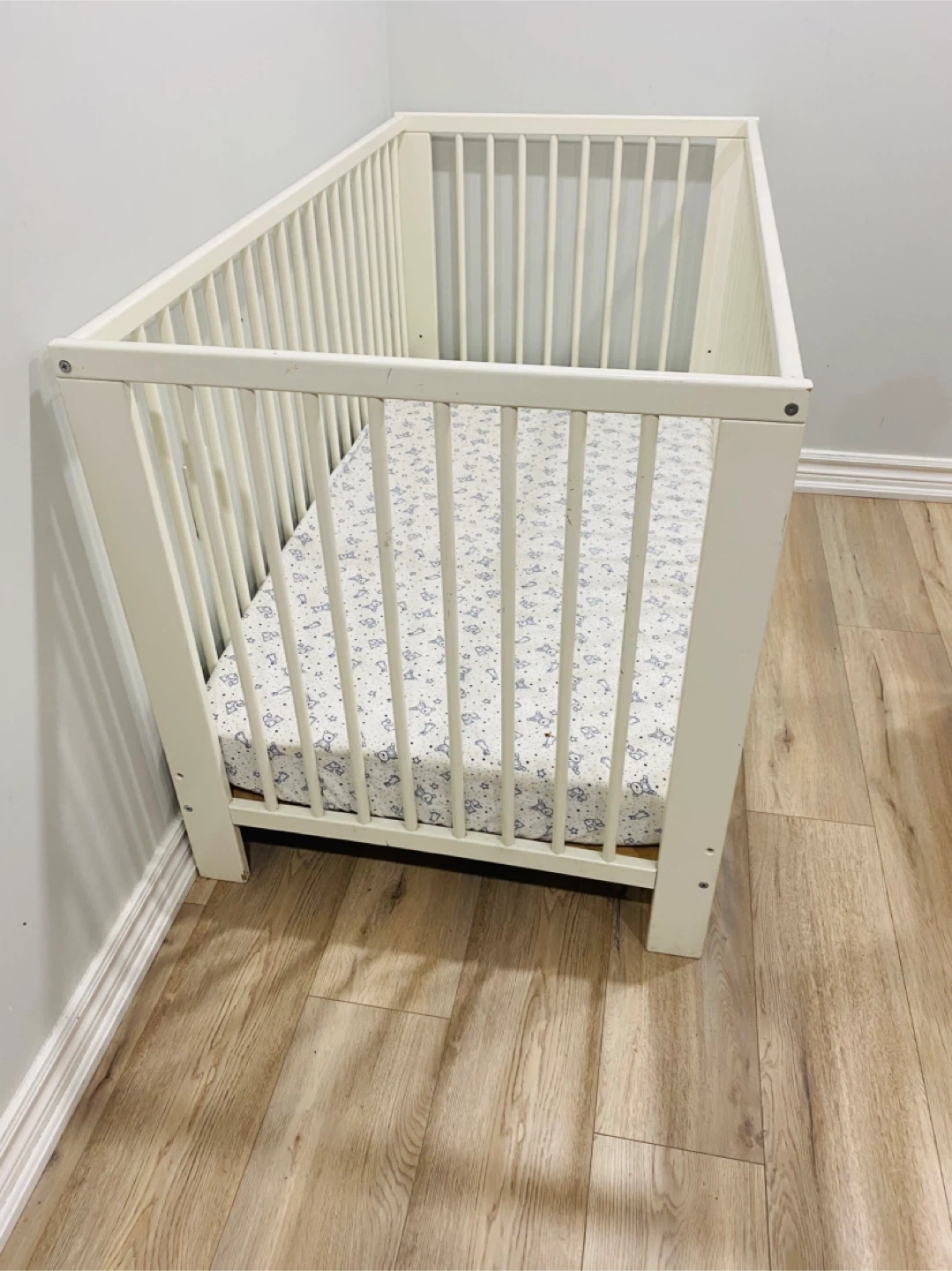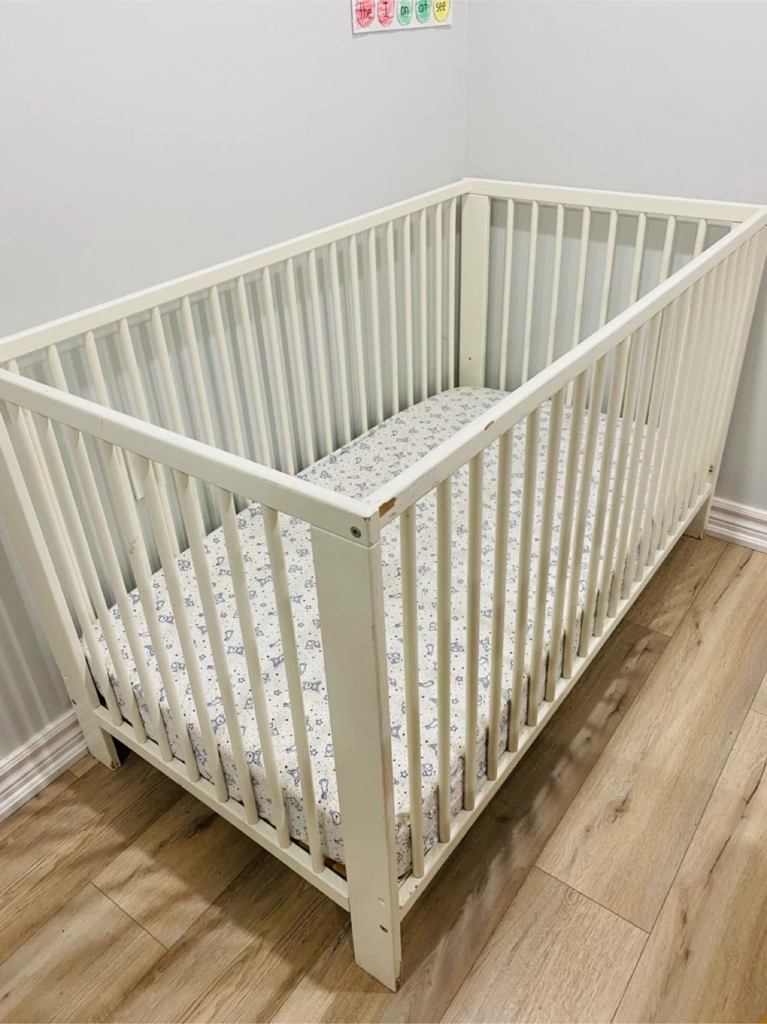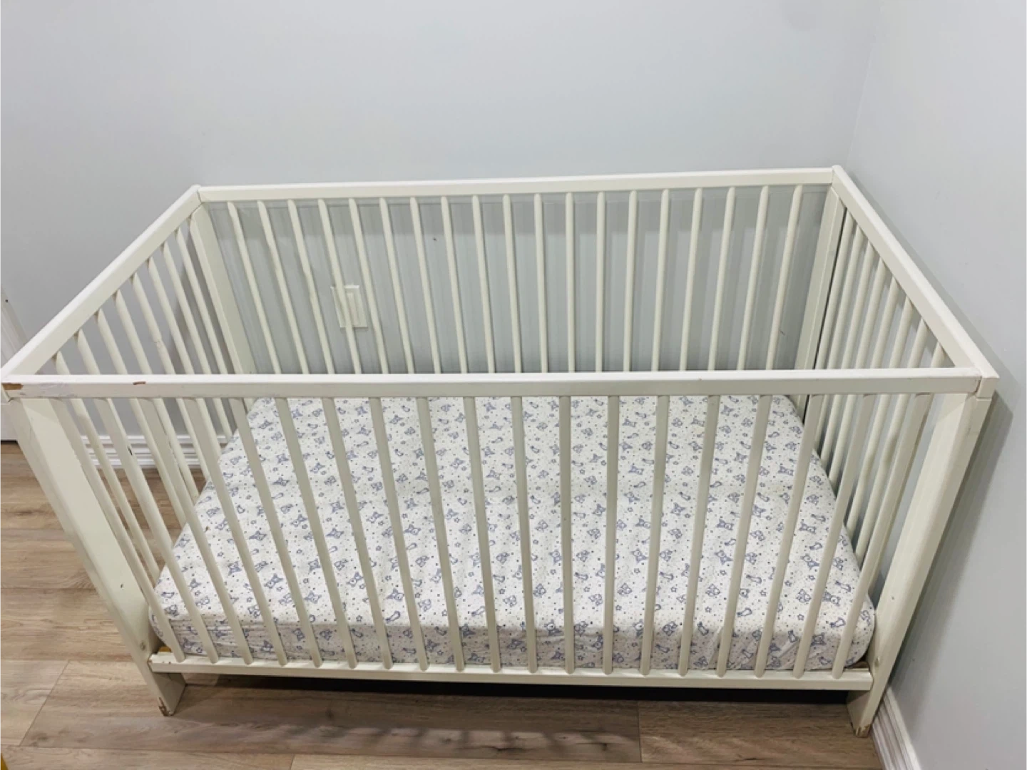Selling a solid white crib that’s in great condition, with only light paint imperfections (shown in photos). Comes with a clean, like-new mattress that’s barely used! Perfect for giving your little one a safe and cozy sleep space without spending a fortune.