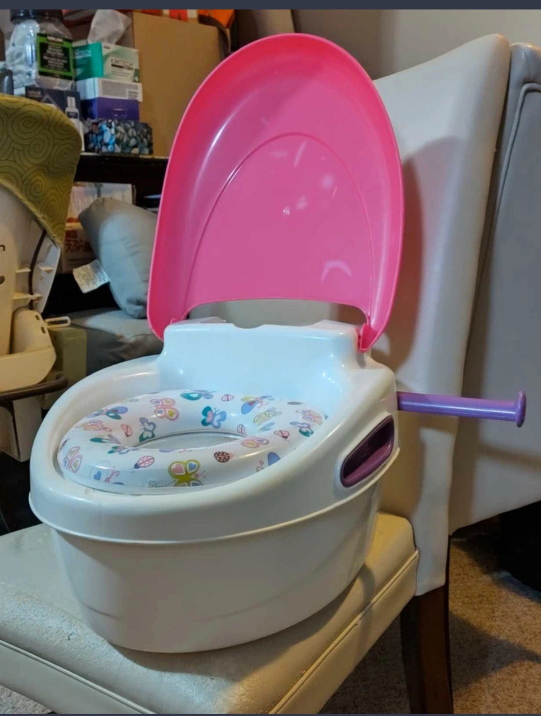 Selling a gently used Summer Infant Step By Step Potty. It's in great shape and ready for its next little user! The potty is pink and white with a butterfly design on the seat. Perfect for helping your little one transition to using the toilet