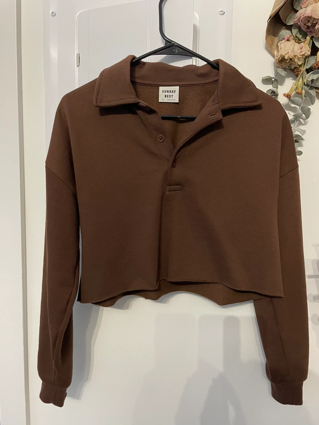 Sunday Best Brown Cropped Polo Sweatshirt - 2XS